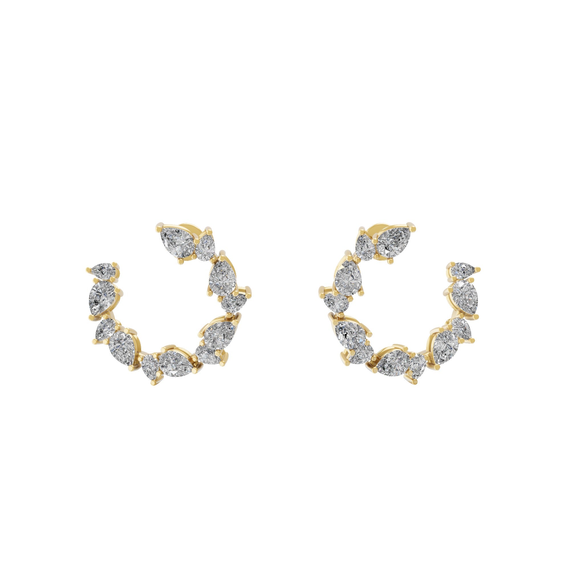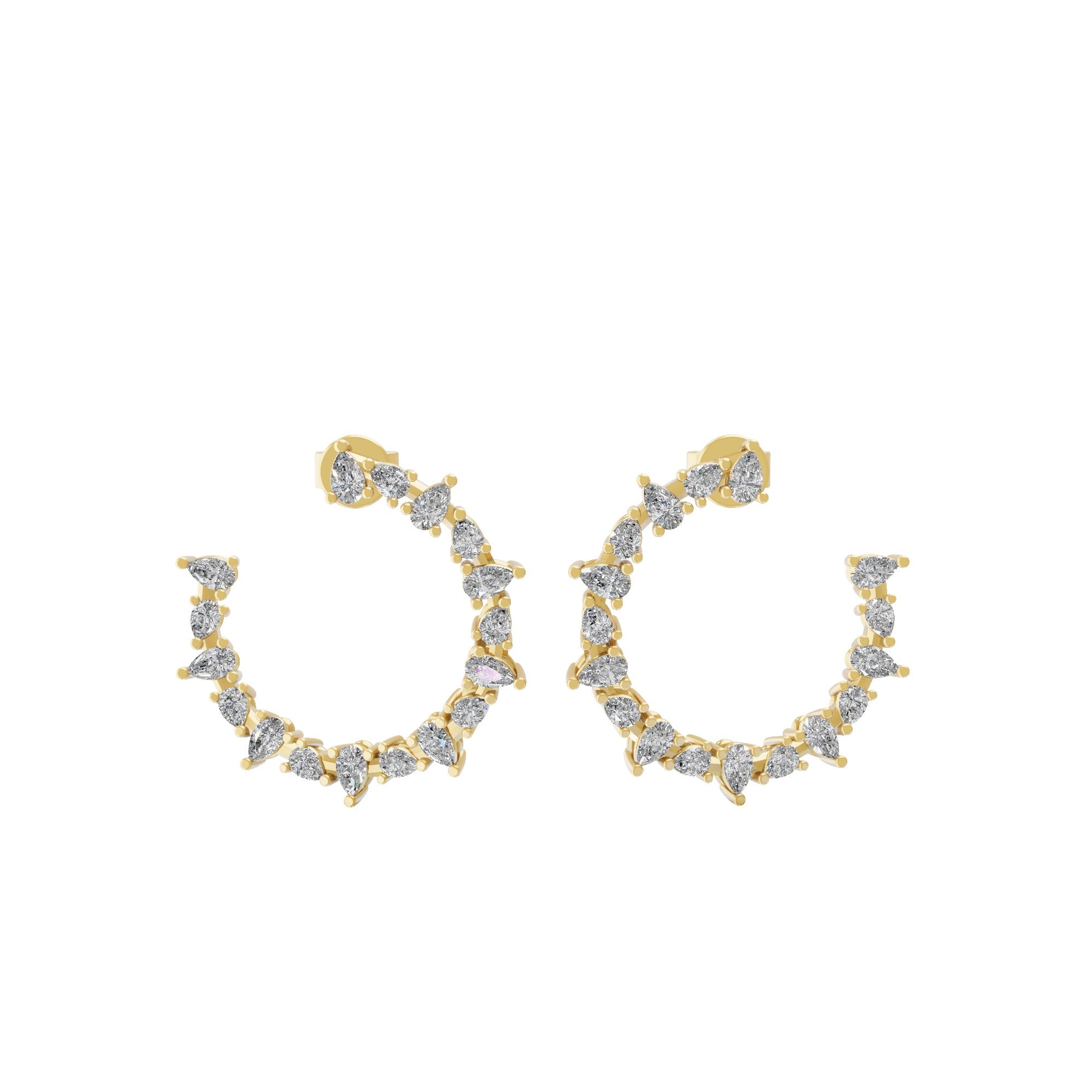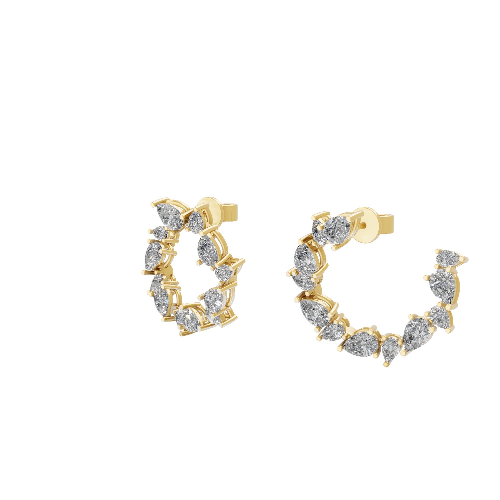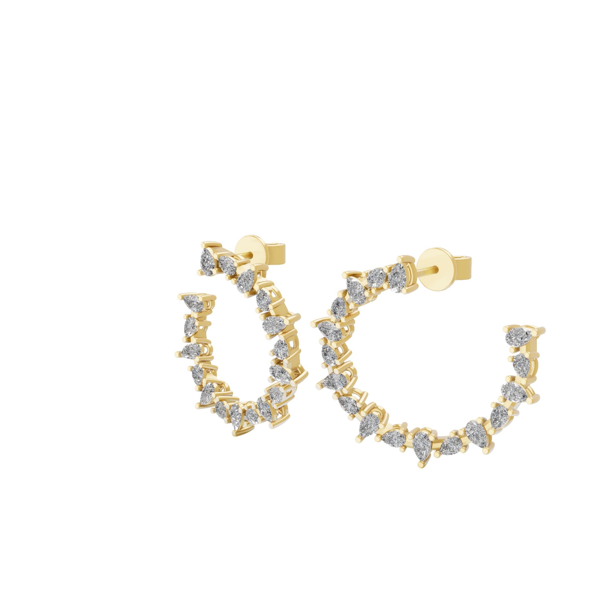 Lab Grown Pear Round Diamond Arc Hoop Earrings 14K Fine Gold 2.22Ct