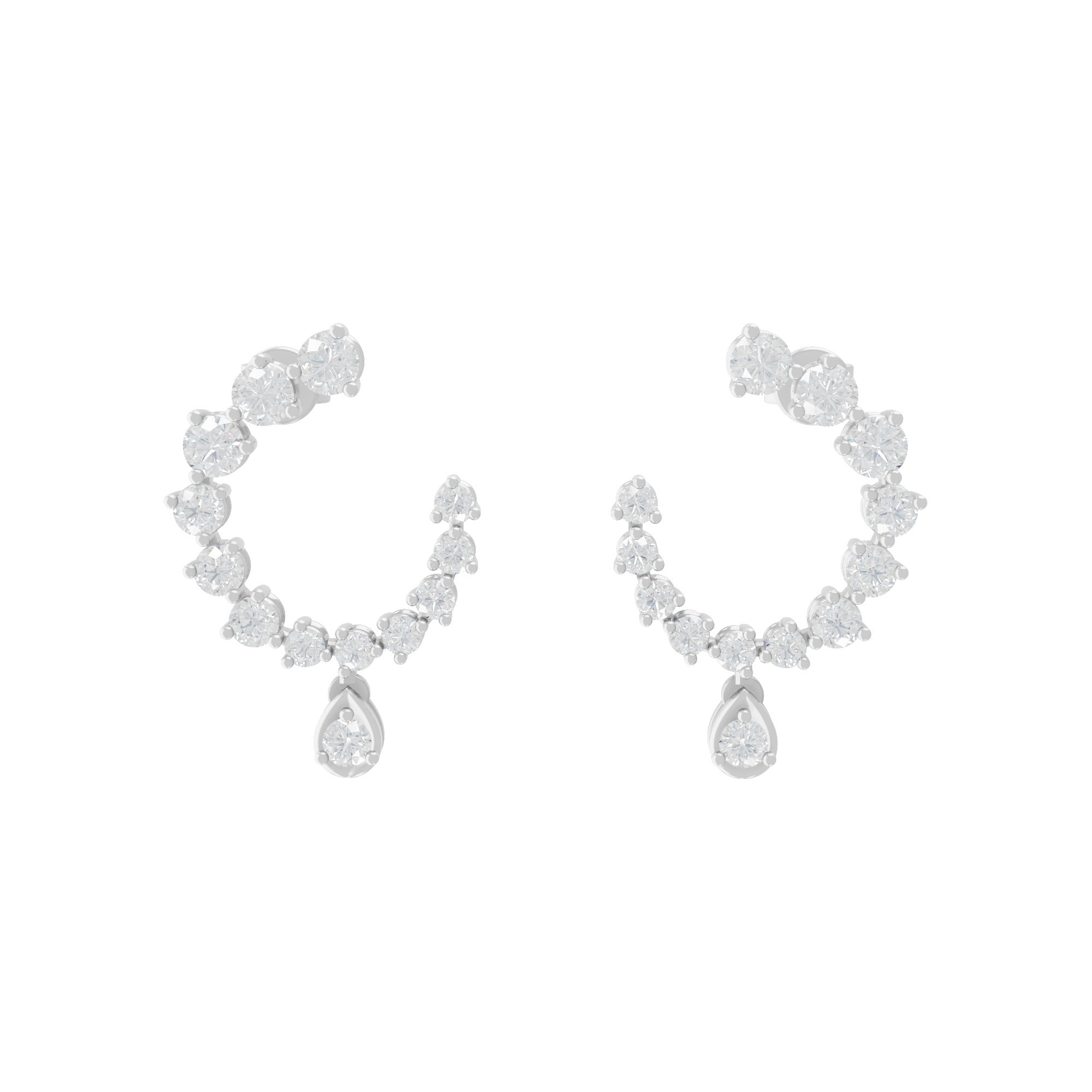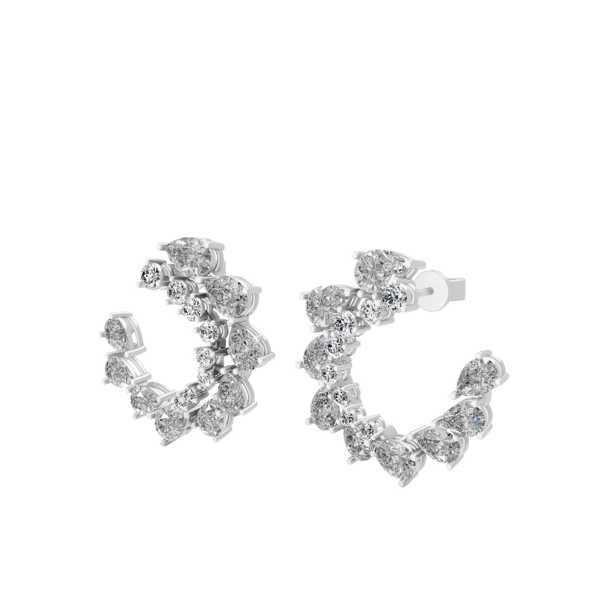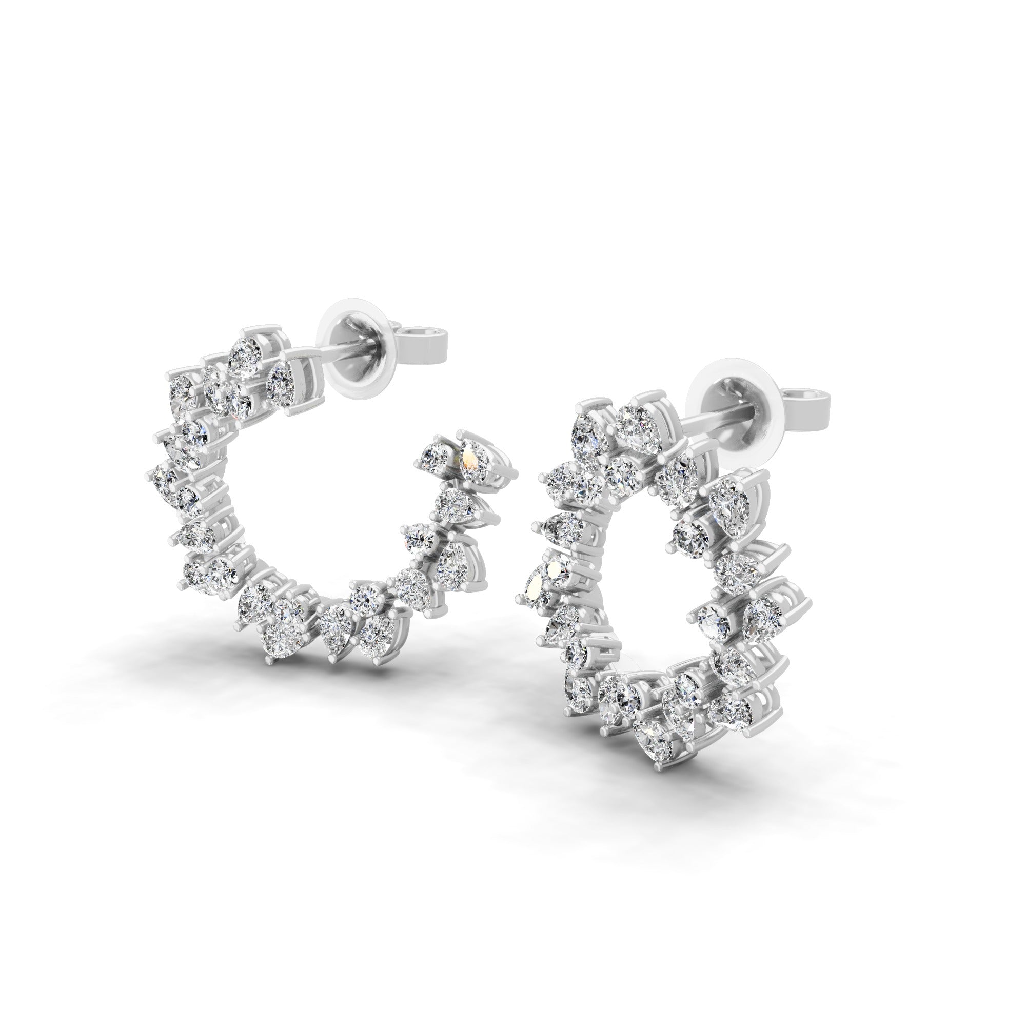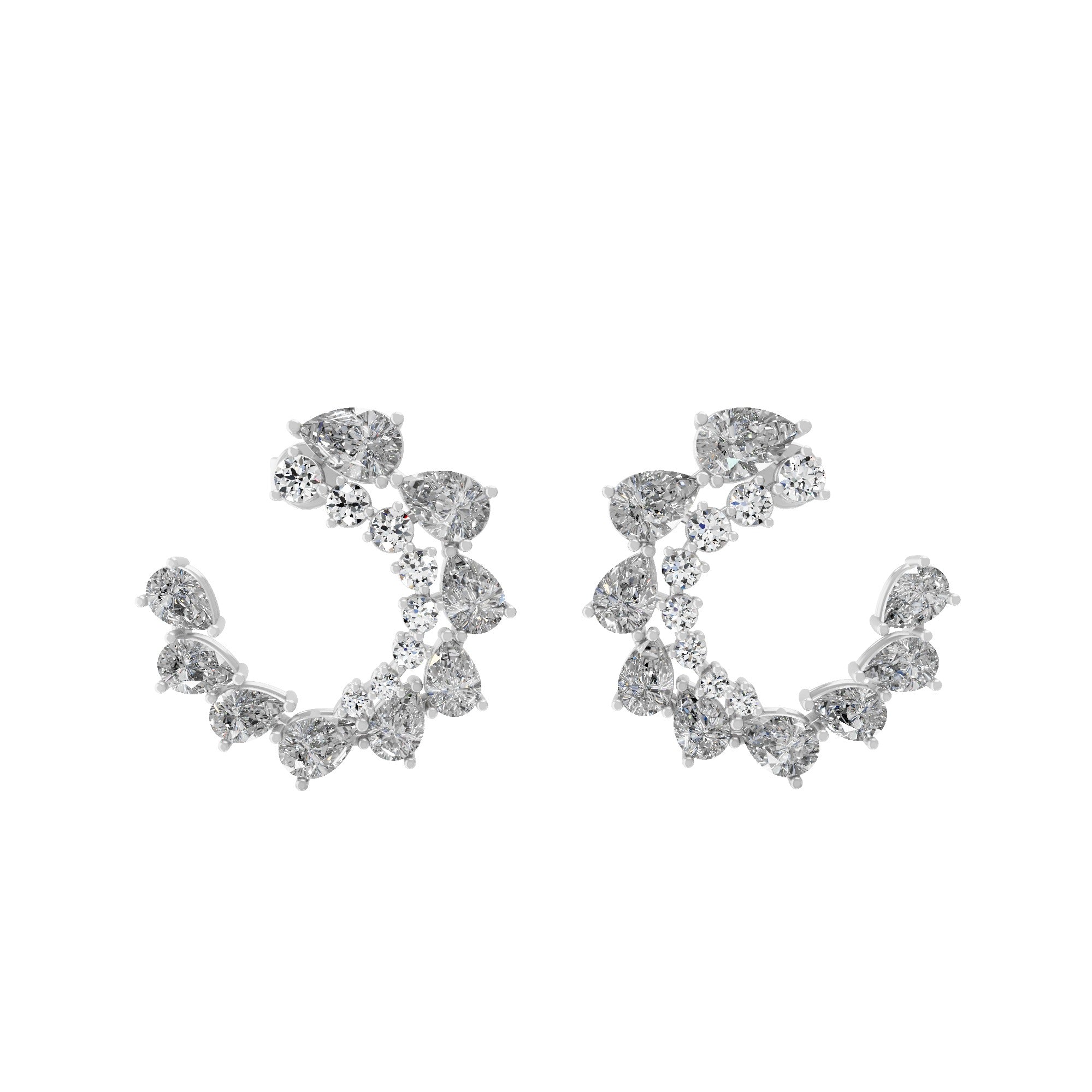 Lab Grown Pear Round Diamond Arc Hoop Earrings 14K Fine Gold 2.22Ct