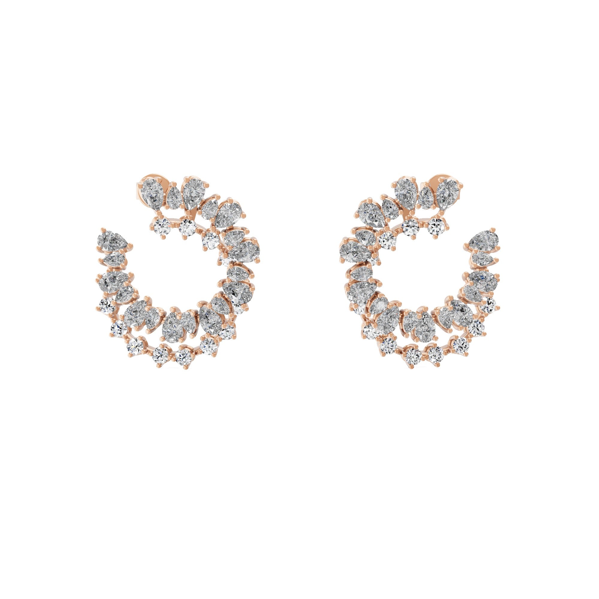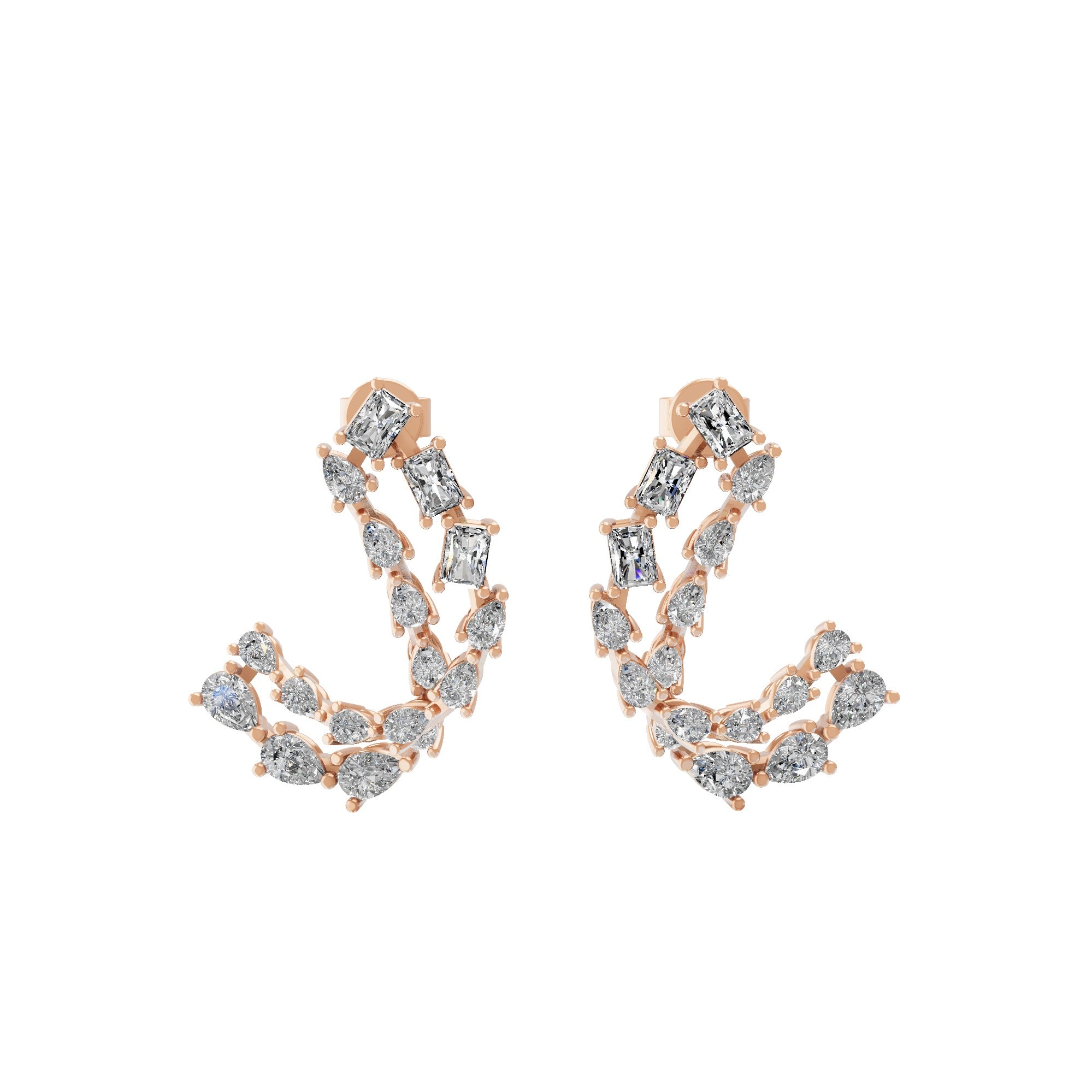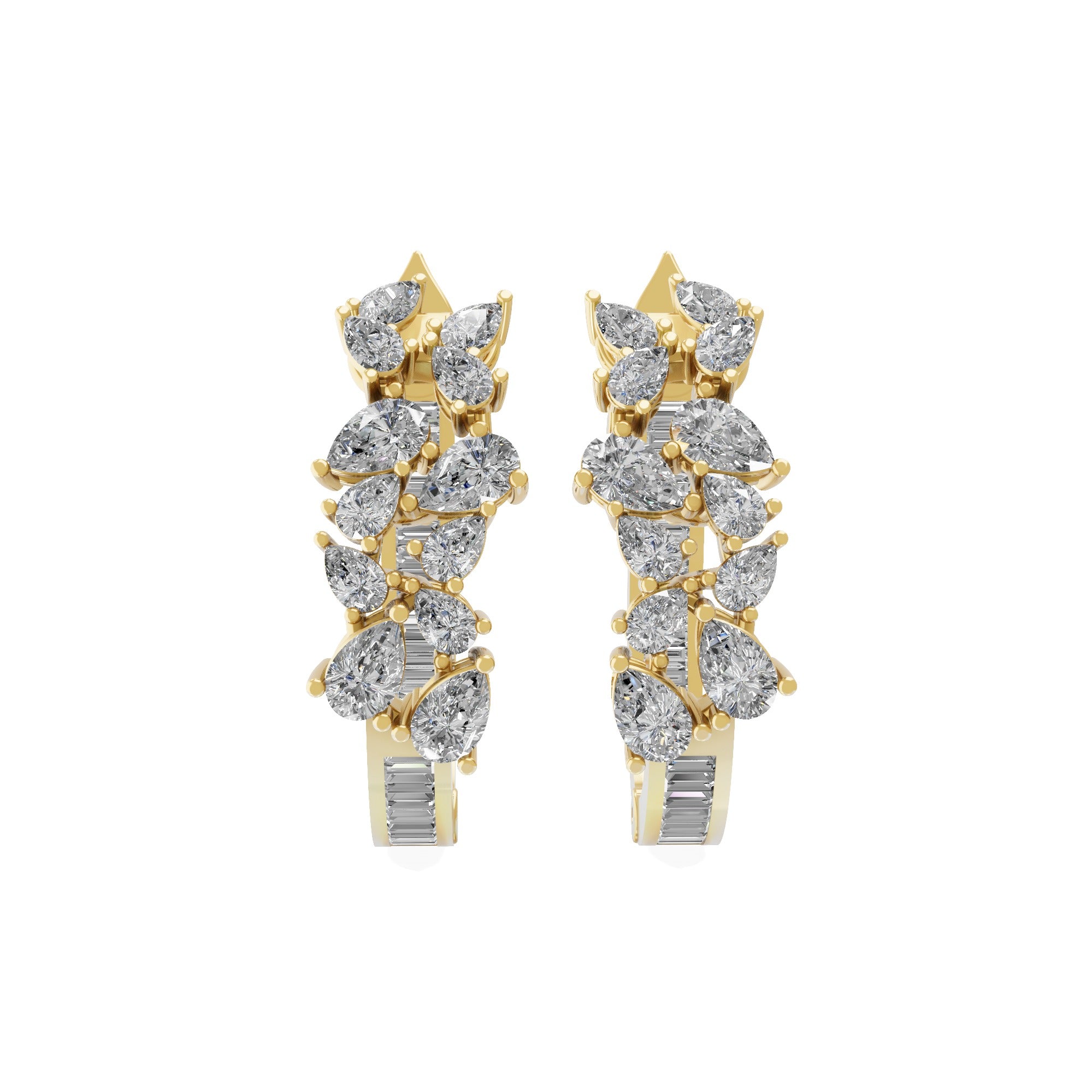3.85Ct 14K Fine Gold Pear Round Cut Lab Grown Diamond Curved Hoop Earrings