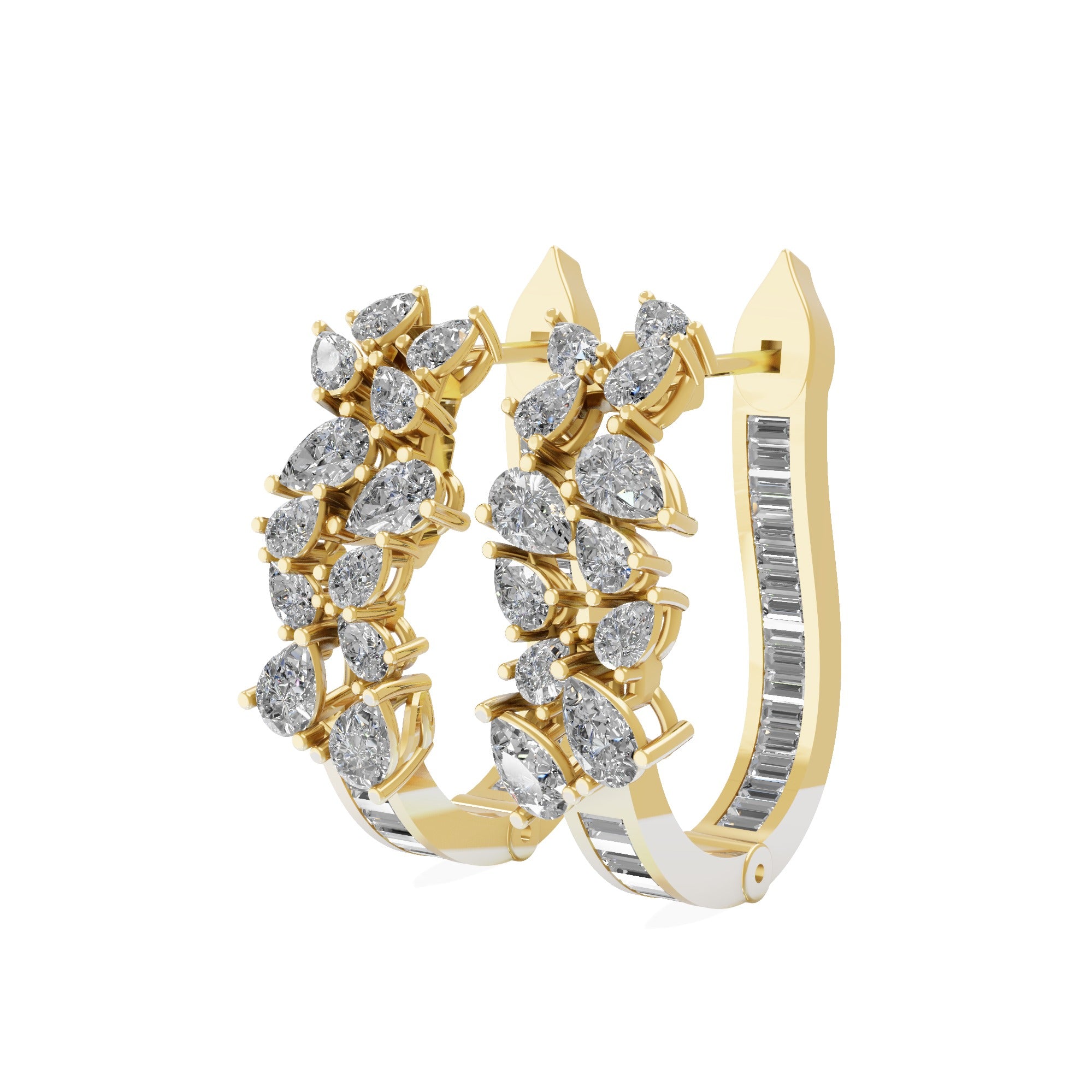 14K Fine Gold Pear Baguette 3.20Ct Lab Grown Diamond Open Hoop Earrings