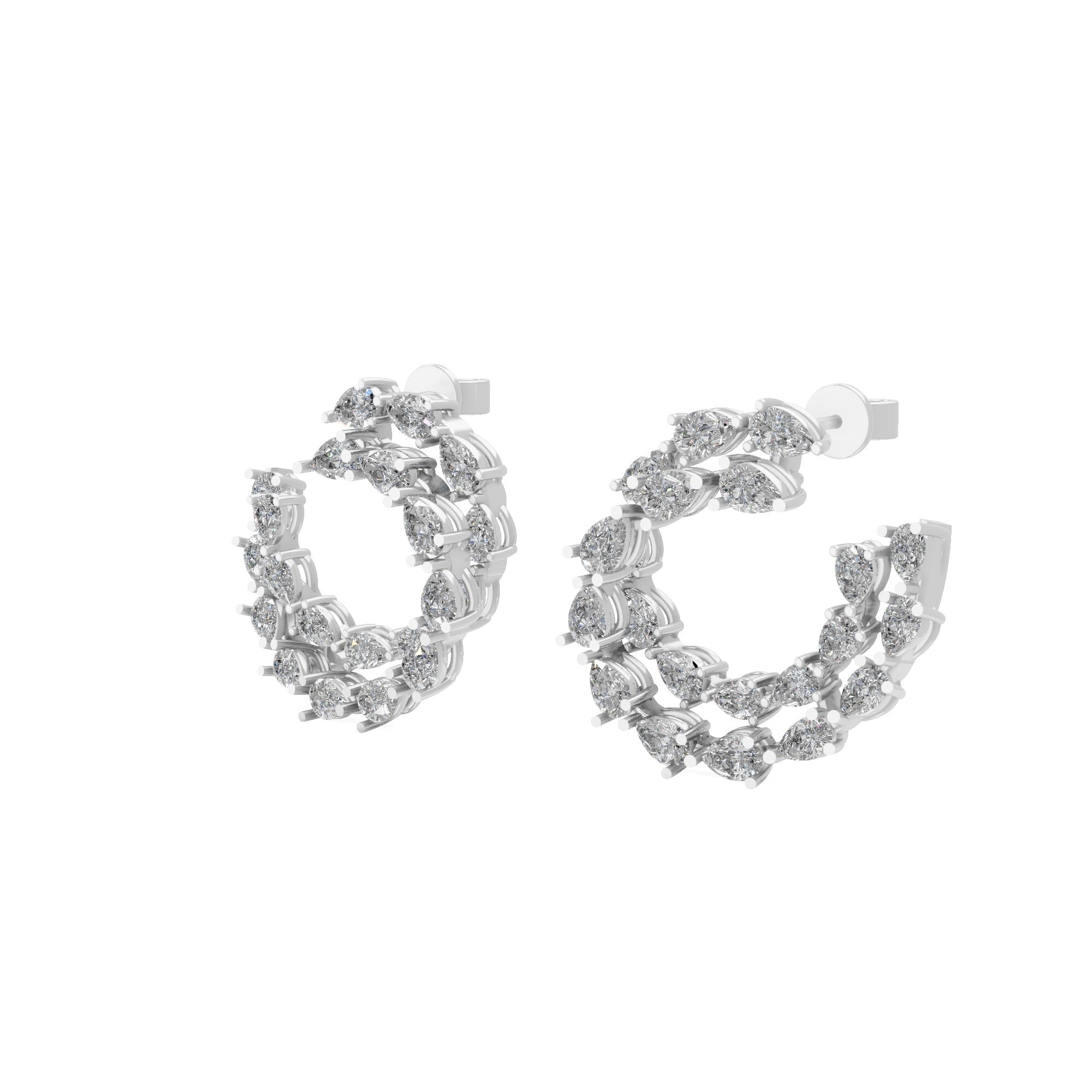 Pear Cut 14K Fine Gold Lab Grown Diamond Floral Hoop Earrings 2.51Ct