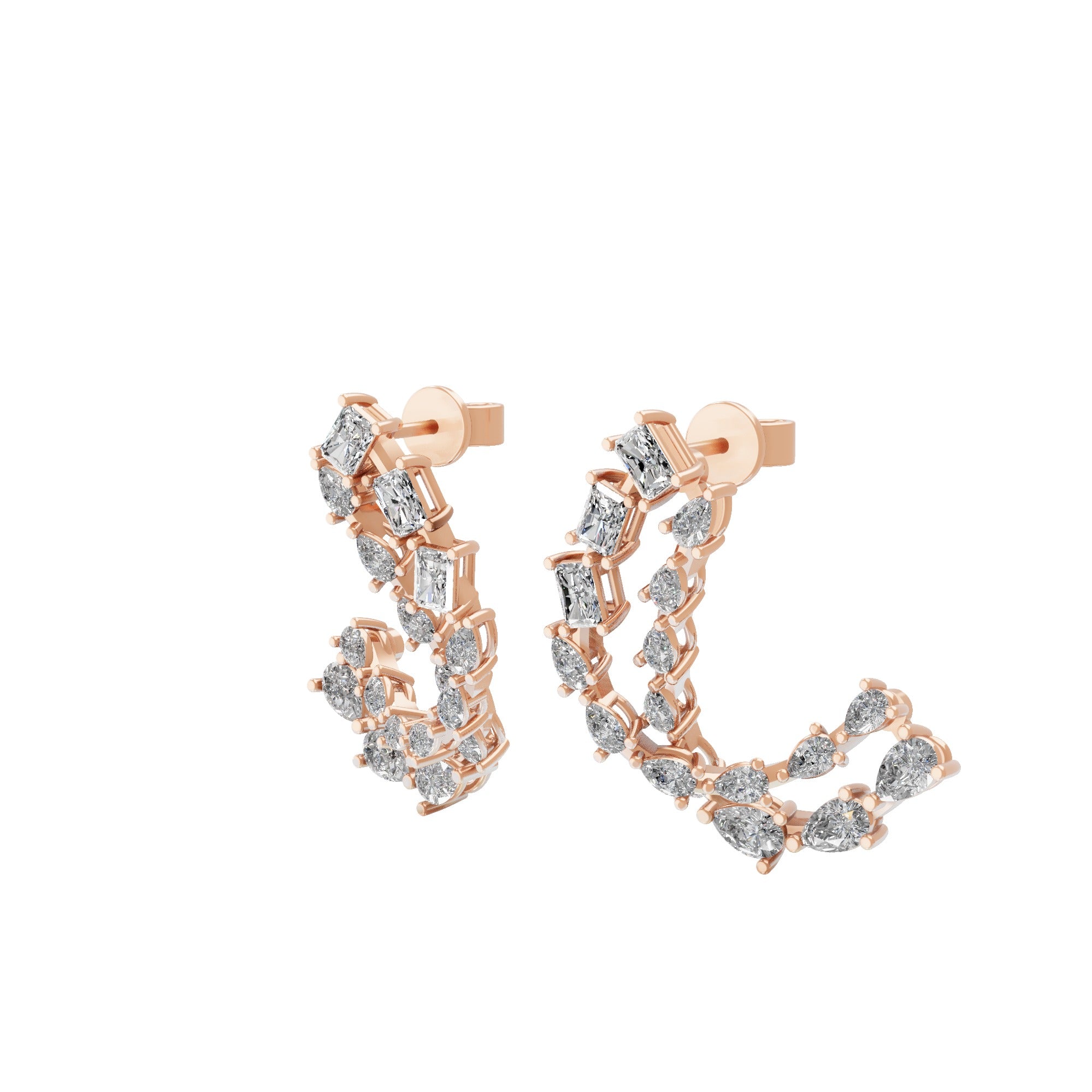 3.26Ct Lab Grown Multi Shape Diamond 14K Fine Gold Open Hoop Earrings
