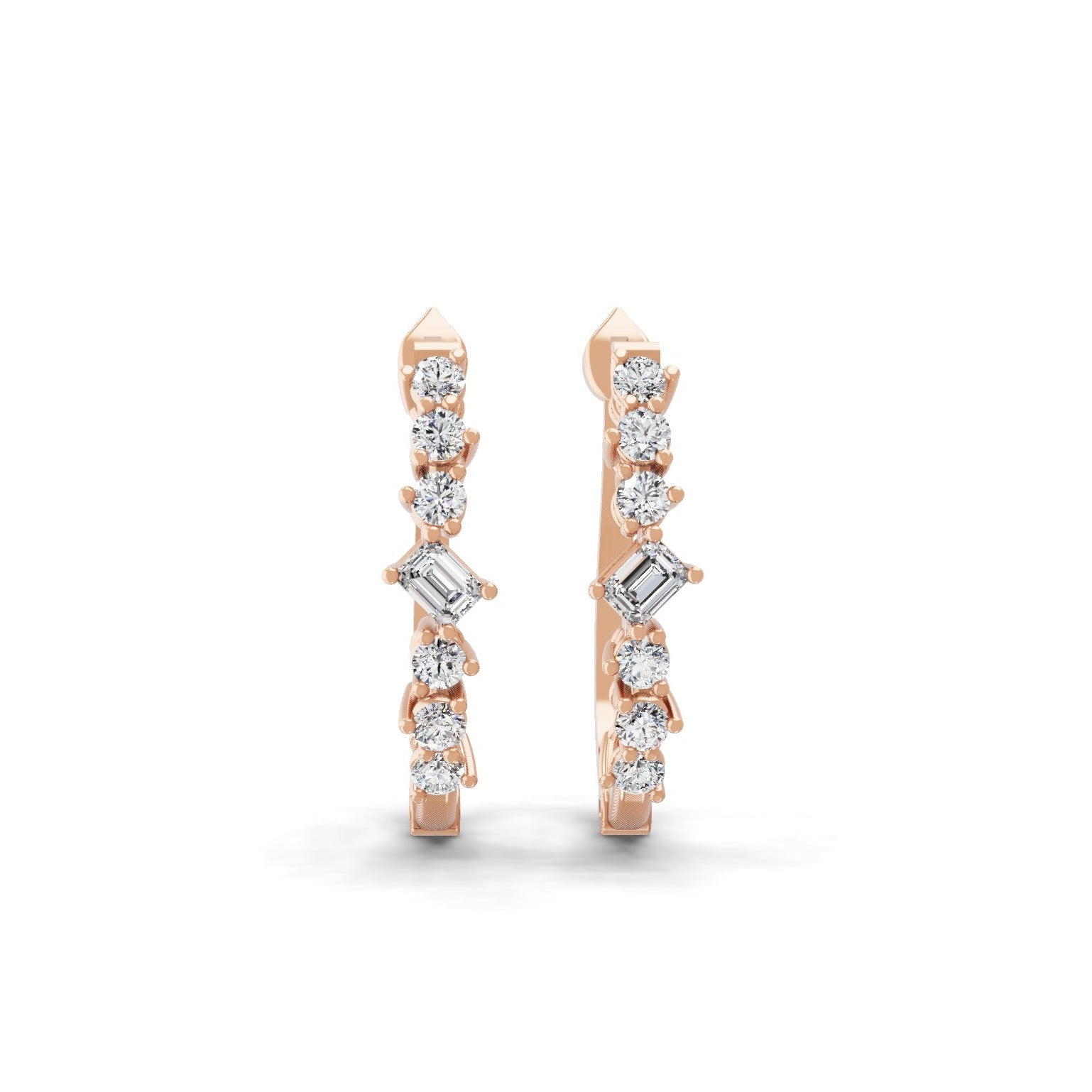 0.58Ct Lab Grown Round Octagon Diamond Hoop Earrings 14K Fine Gold