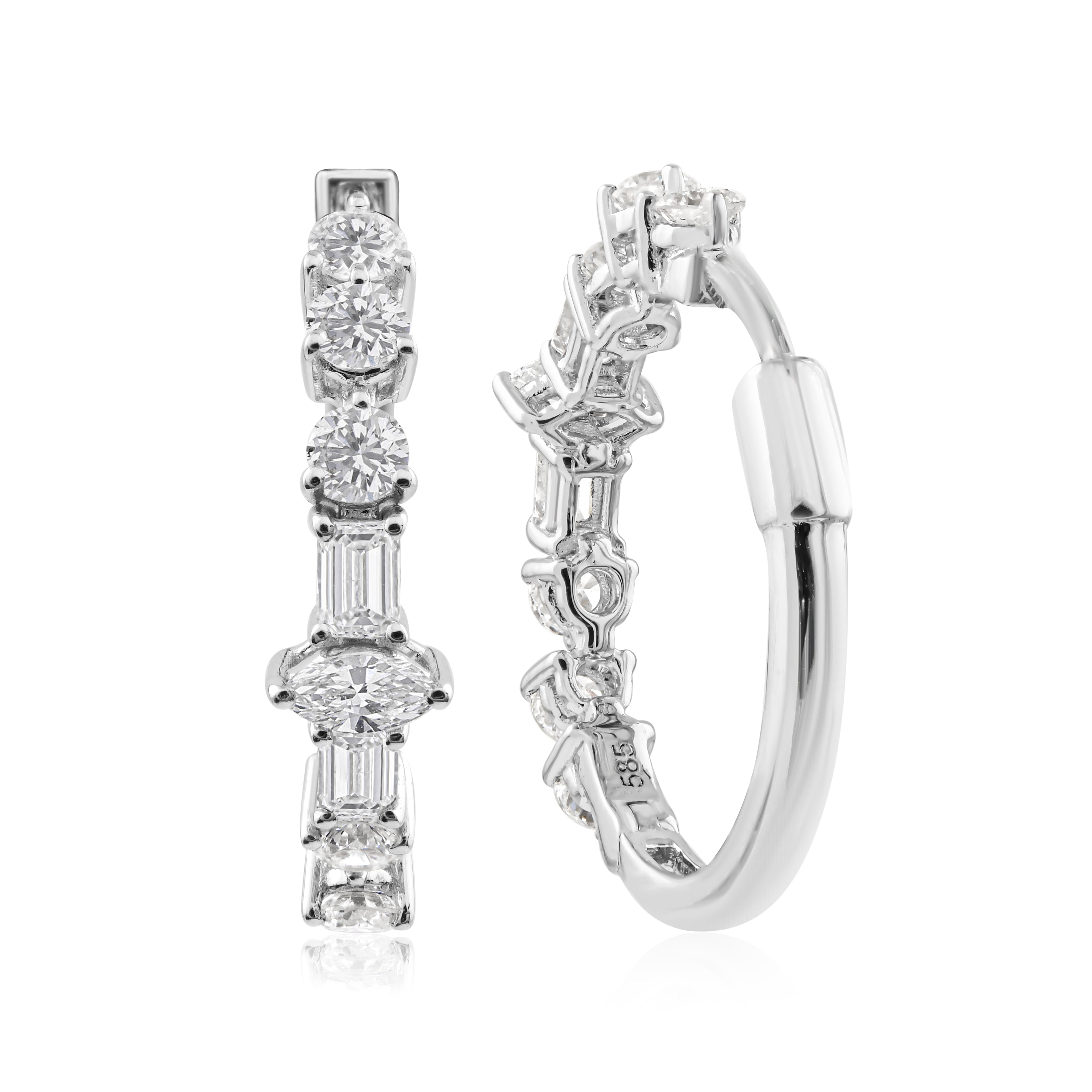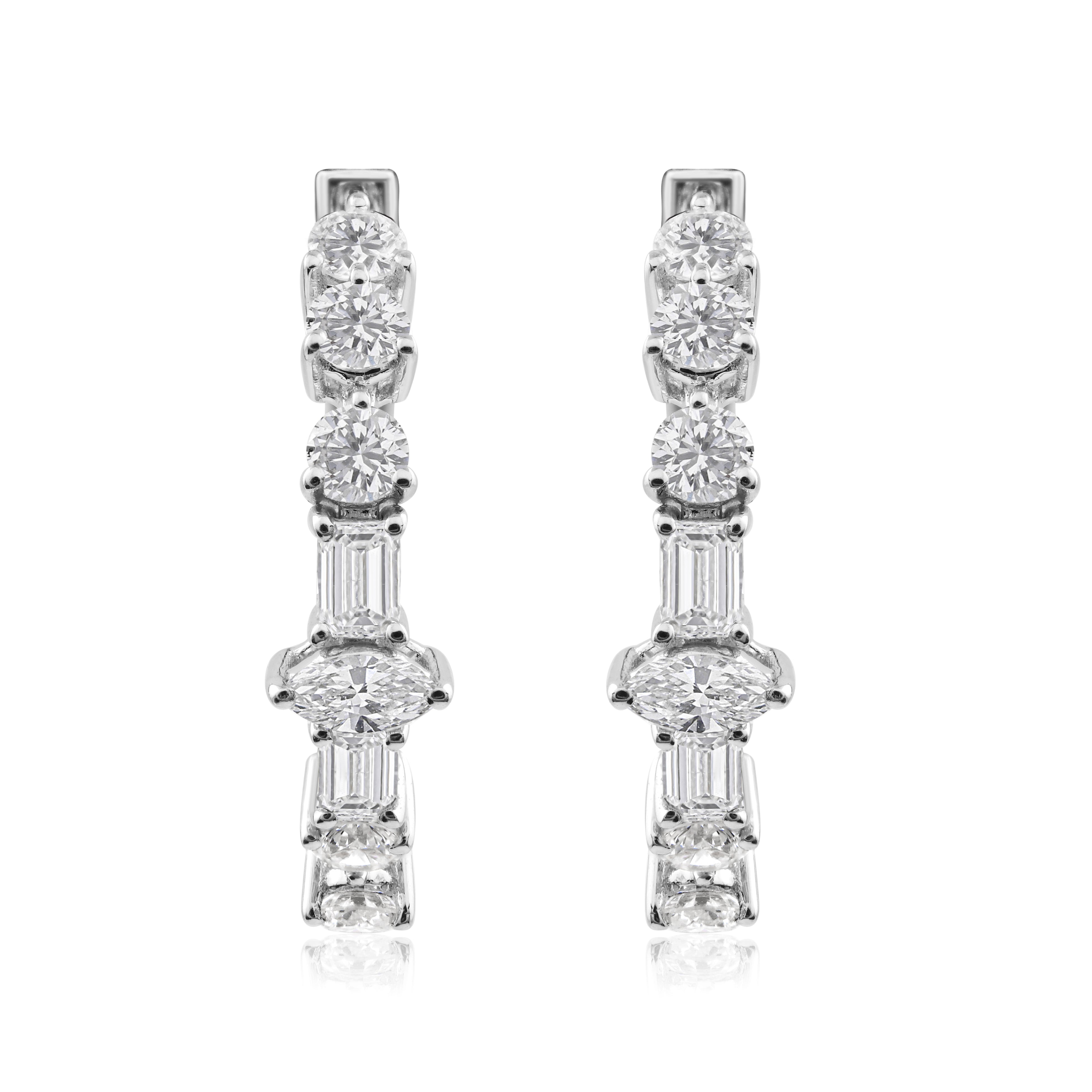 Multi Shape Lab Grown Diamond 14K Fine Gold 1.30Ct Hoop Earrings