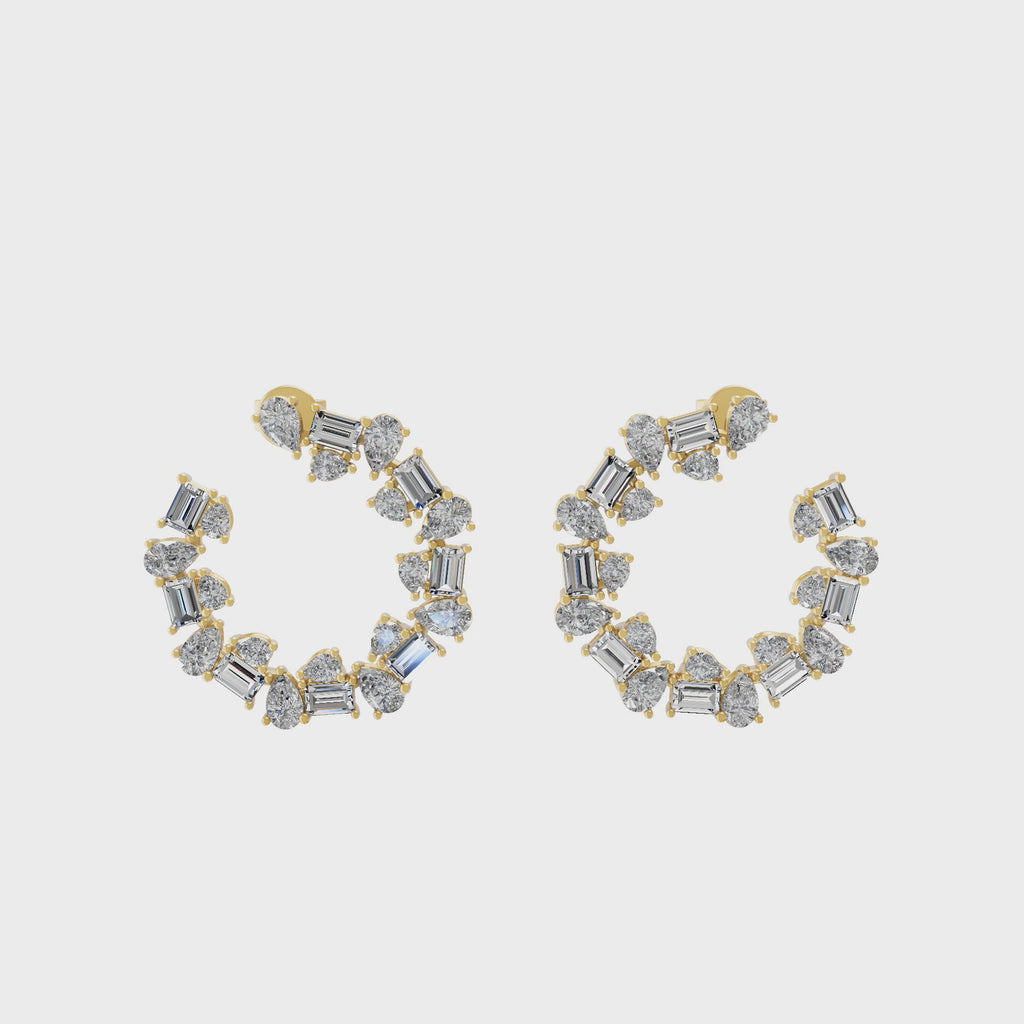 14K Fine Gold Pear Baguette 3.20Ct Lab Grown Diamond Open Hoop Earrings