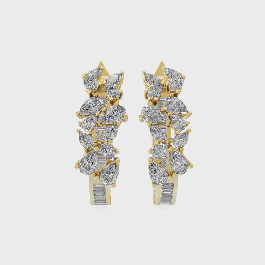 Lab Grown Diamond 2.43Ct Baguette Pear Cut Hoop Earrings 14K Fine Gold
