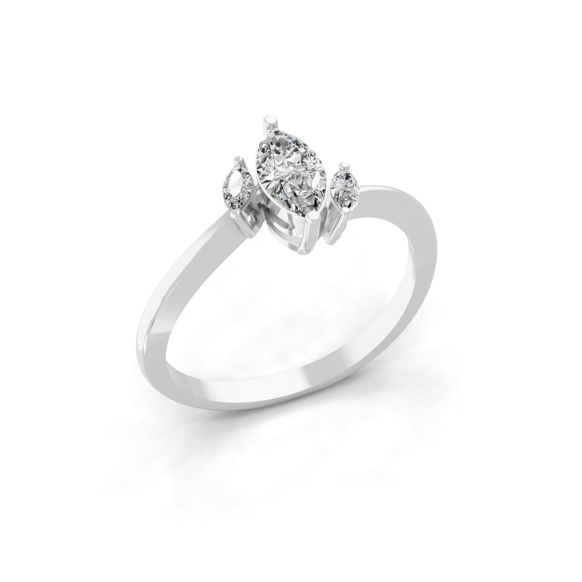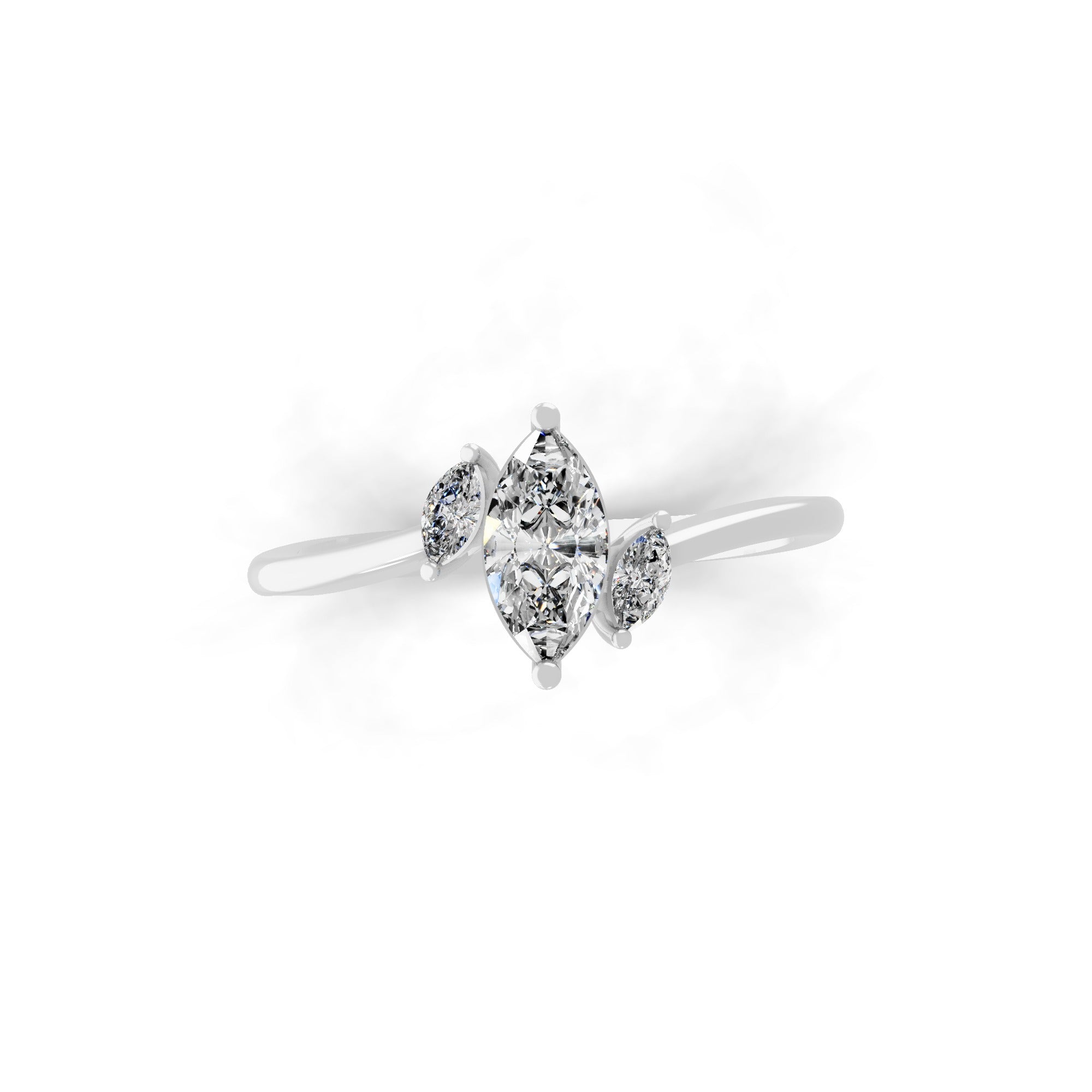 Marquise Cut Three Stone Lab Grown Diamond Minimalist Ring 0.54Ct 14K Fine Gold