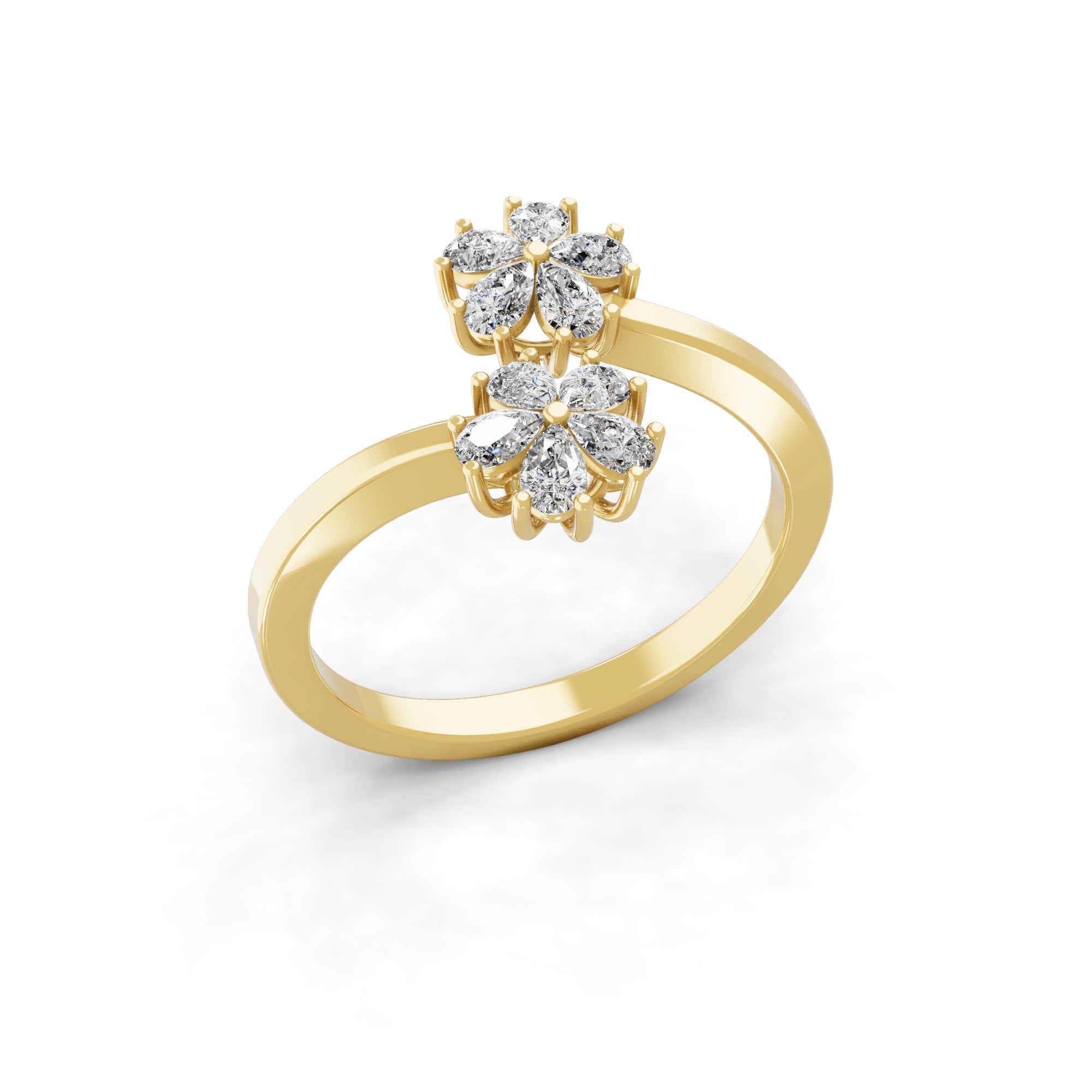 14K Fine Gold Lab Grown Diamond Pear Cut Floral Ring 0.65Ct