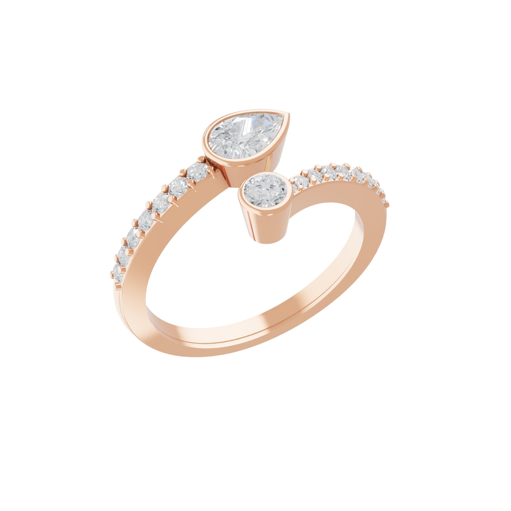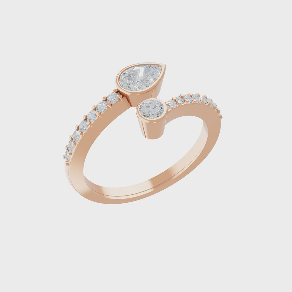 0.85Ct Lab Grown Diamond Pear Round Cut 14K Fine Gold toi et moi Ring