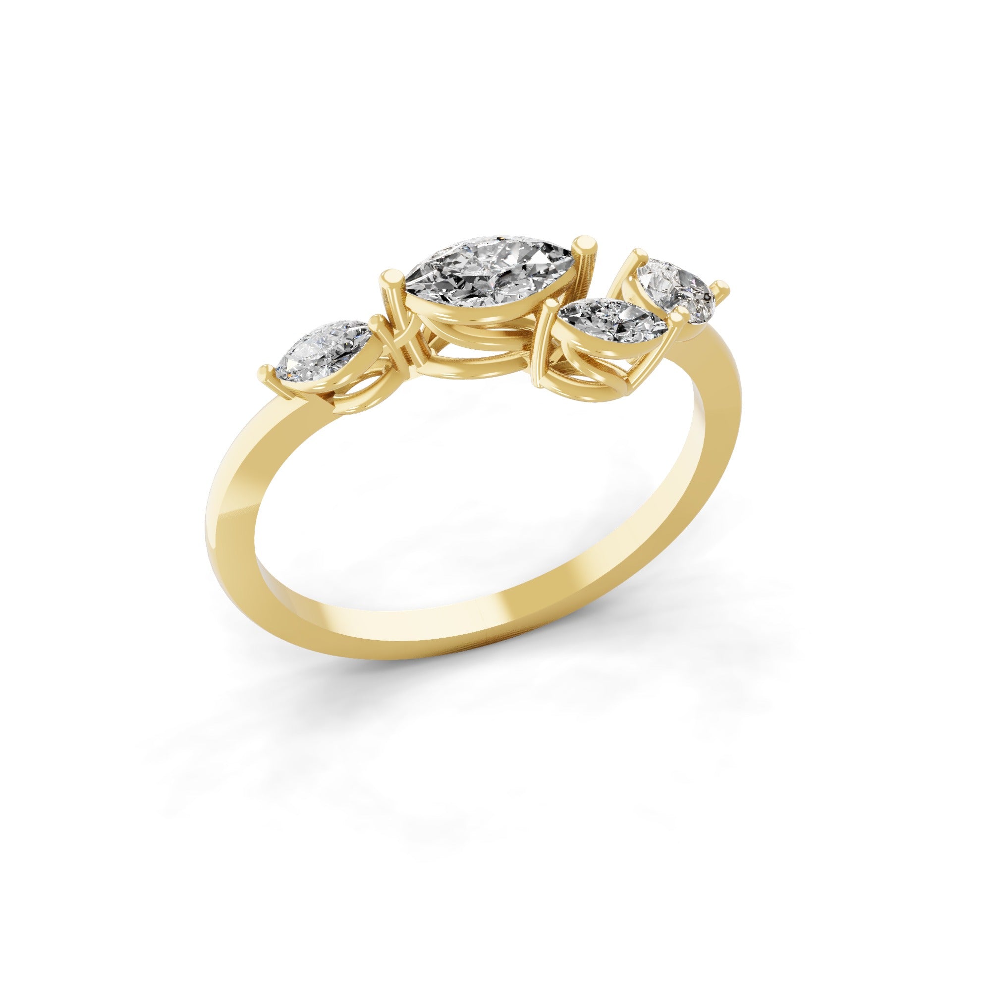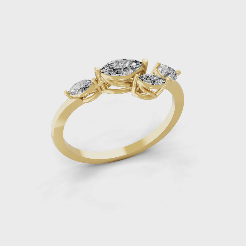 14K Fine Gold 0.59Ct Lab Grown Pear Marquise Diamond Cuff Minimalist Ring