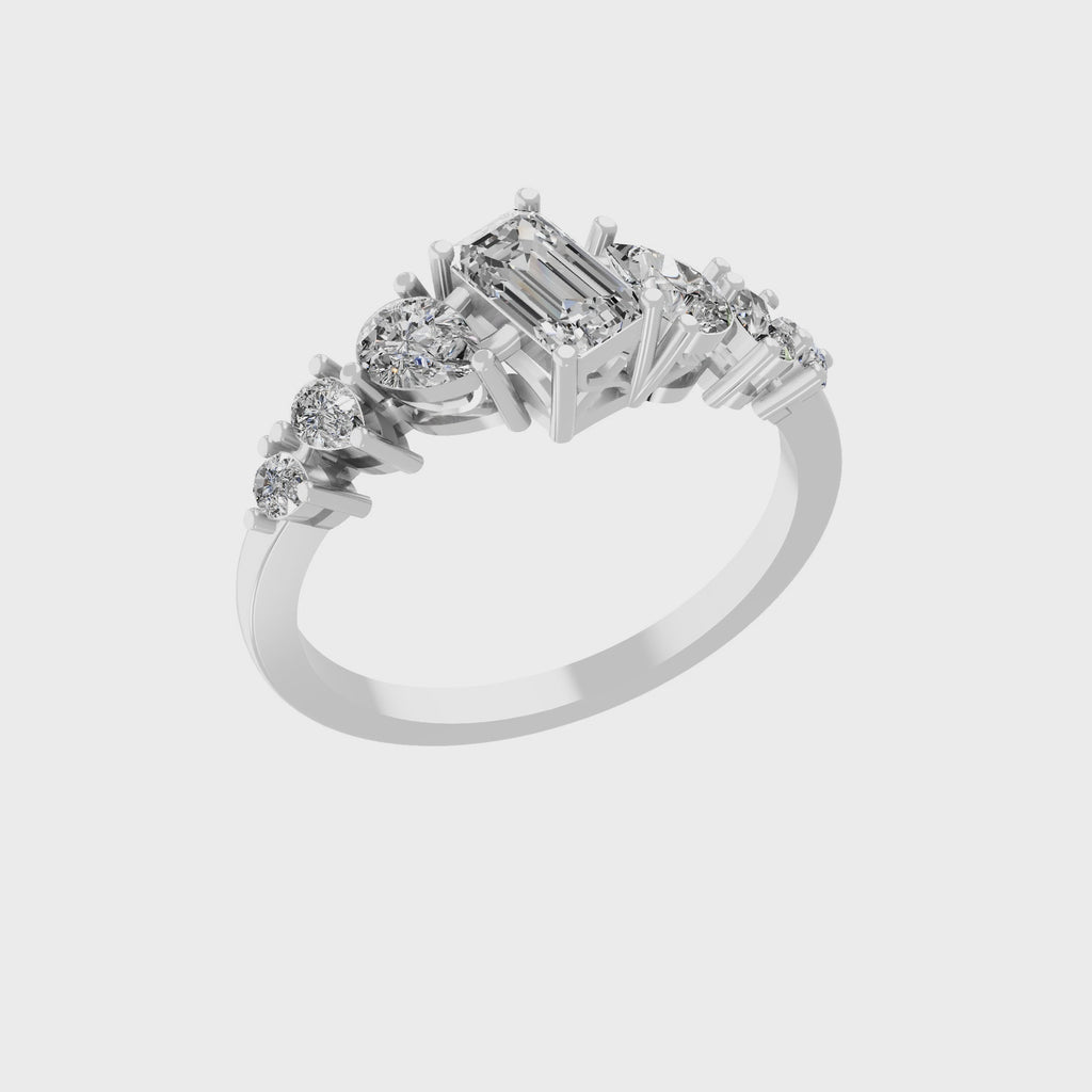 Pear Emerald Cut Minimalist Ring Lab Grown Diamond 0.49Ct 14K Fine Gold