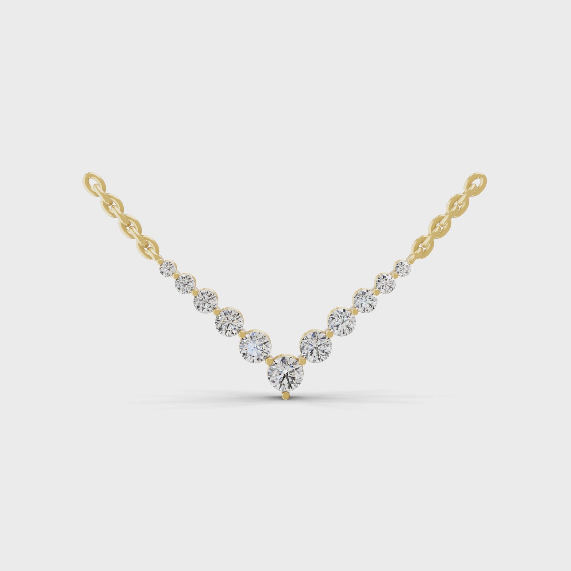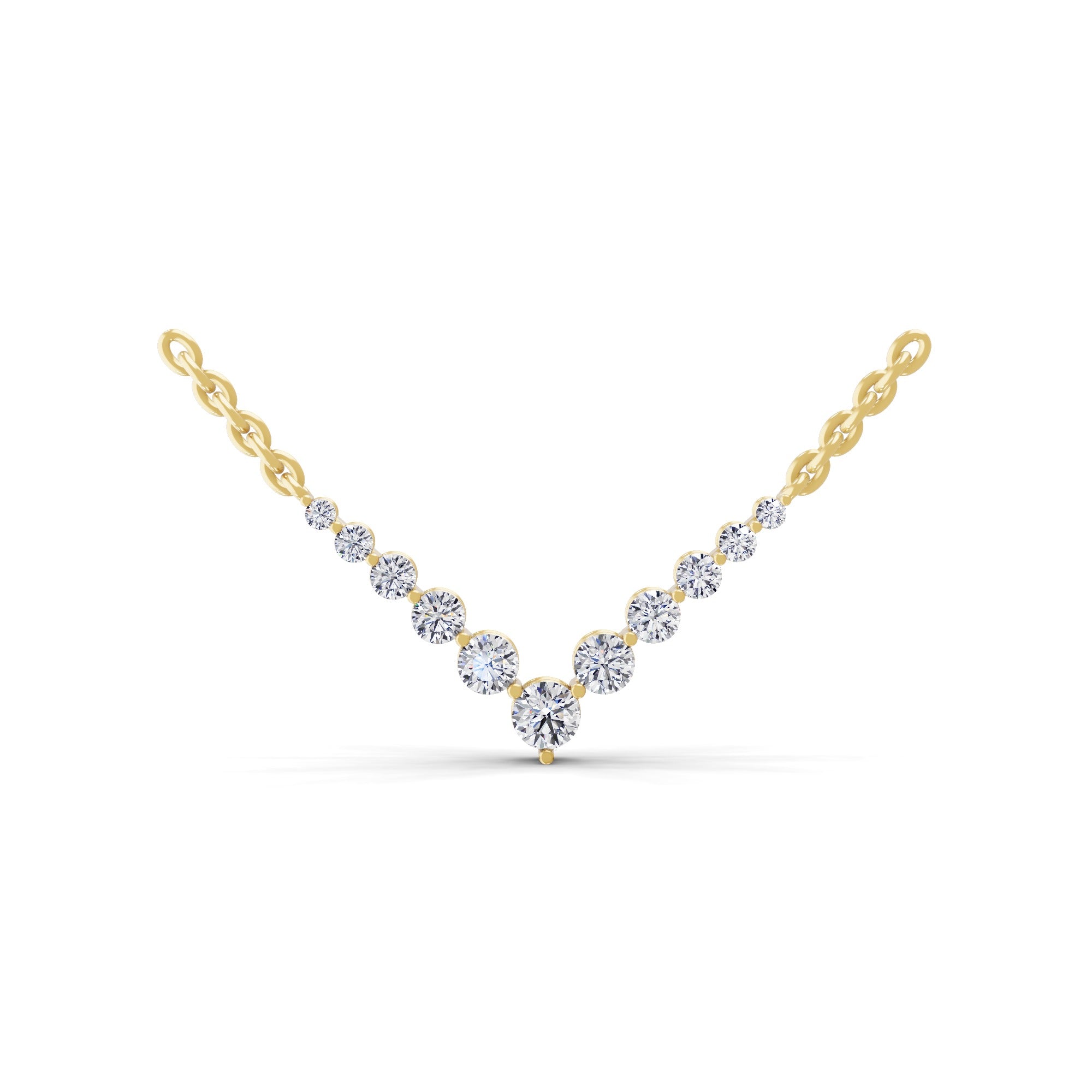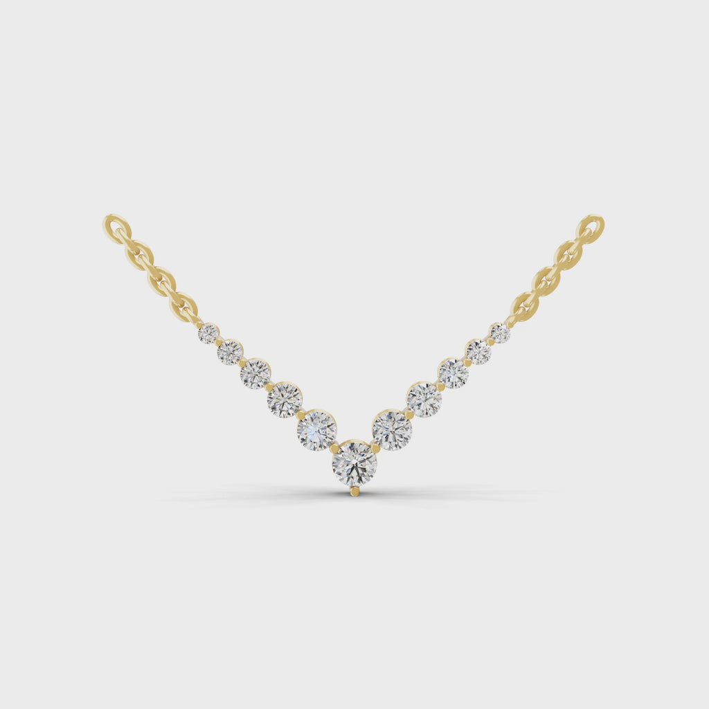 14K Fine Gold Lab Grown Diamond Graduated V Necklace 1.57Ct