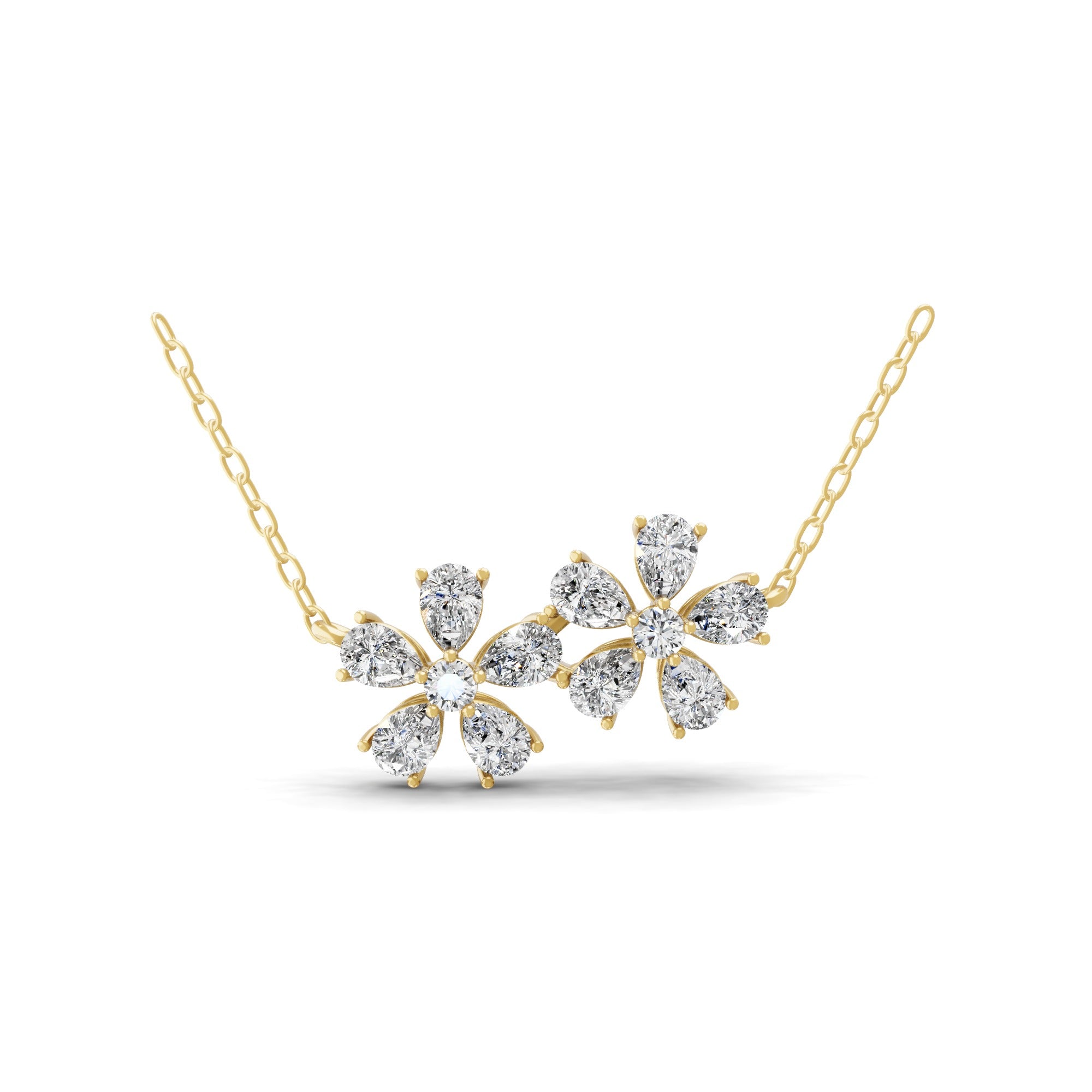 Lab Grown Diamond Floral Chain Necklace 14K Fine Gold 1.63Ct