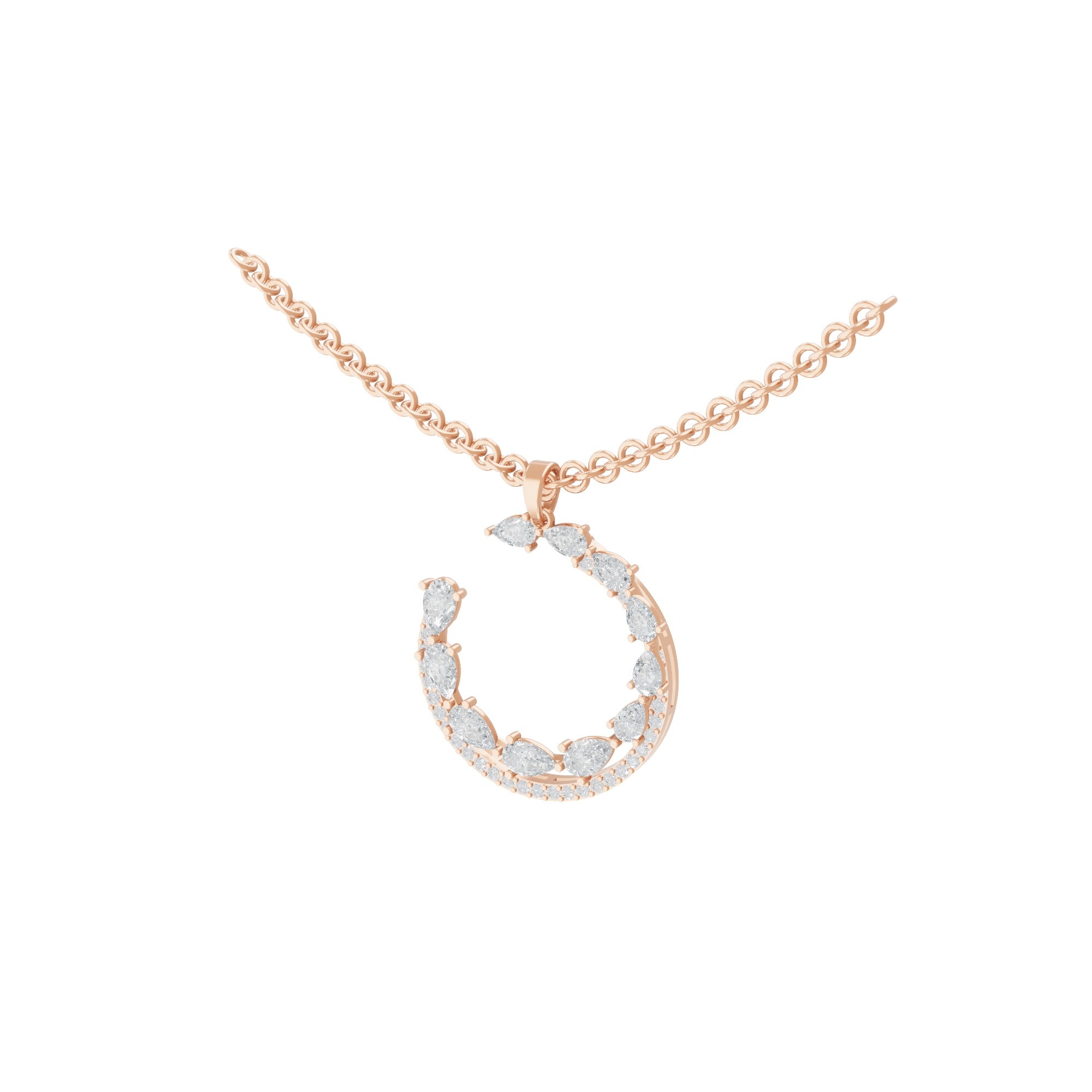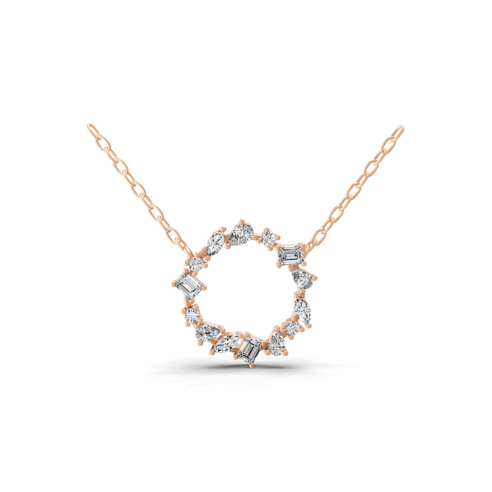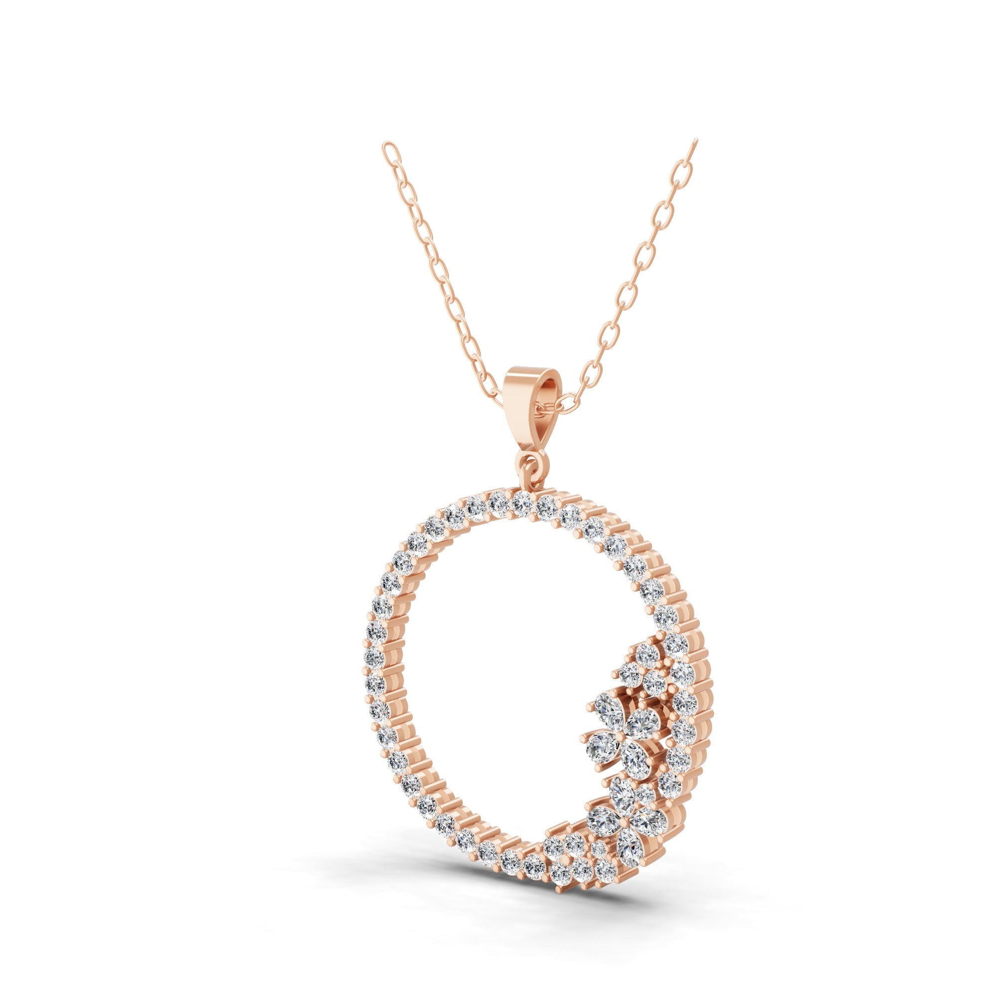 Rose Gold Open Circle 2.35Ct Lab Grown Diamond Pendant Necklace 14K Gold