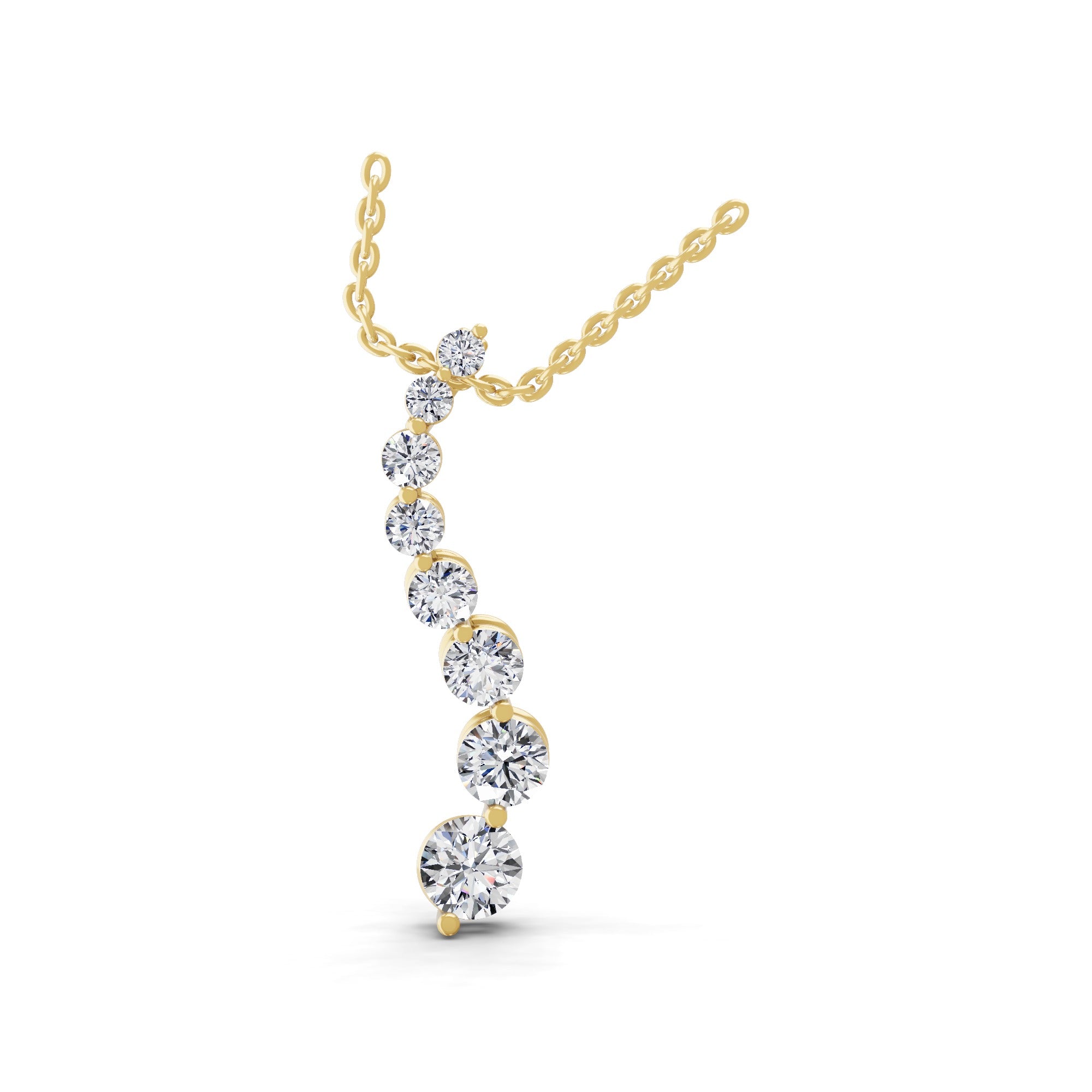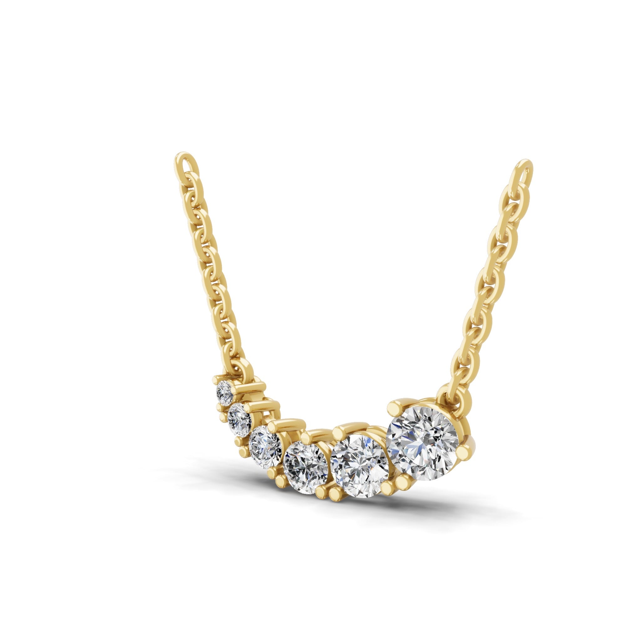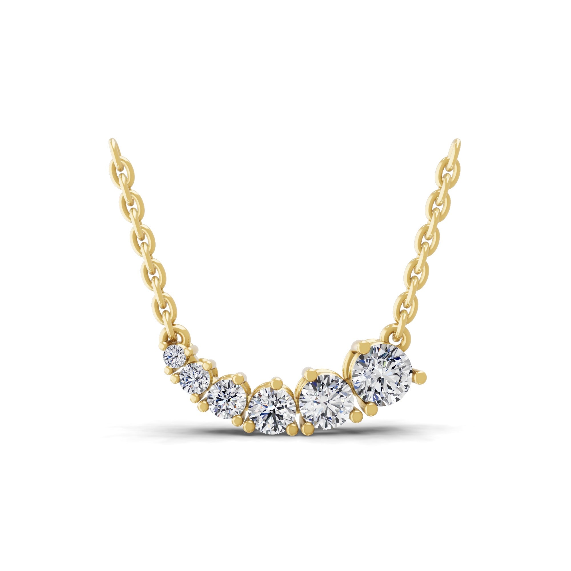 Graduating Round Cut Lab Grown Diamond Pendant Necklace 1.06Ct 14K Gold