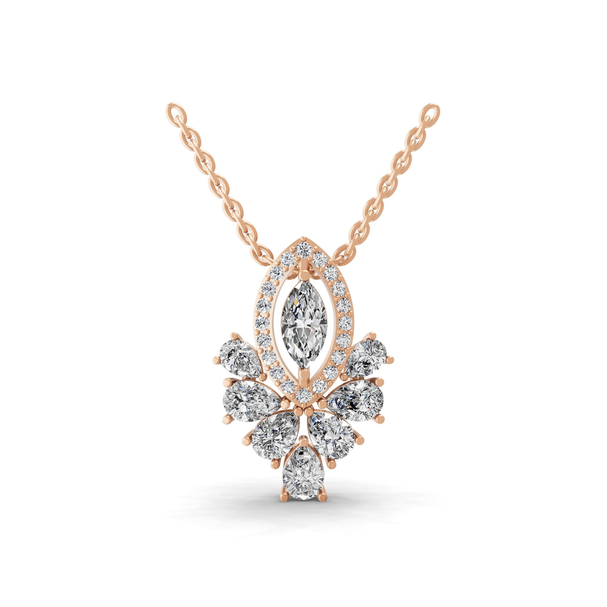 Cascading Pendant Necklace Pear Marquise Cut 0.65Ct Lab Grown Diamond