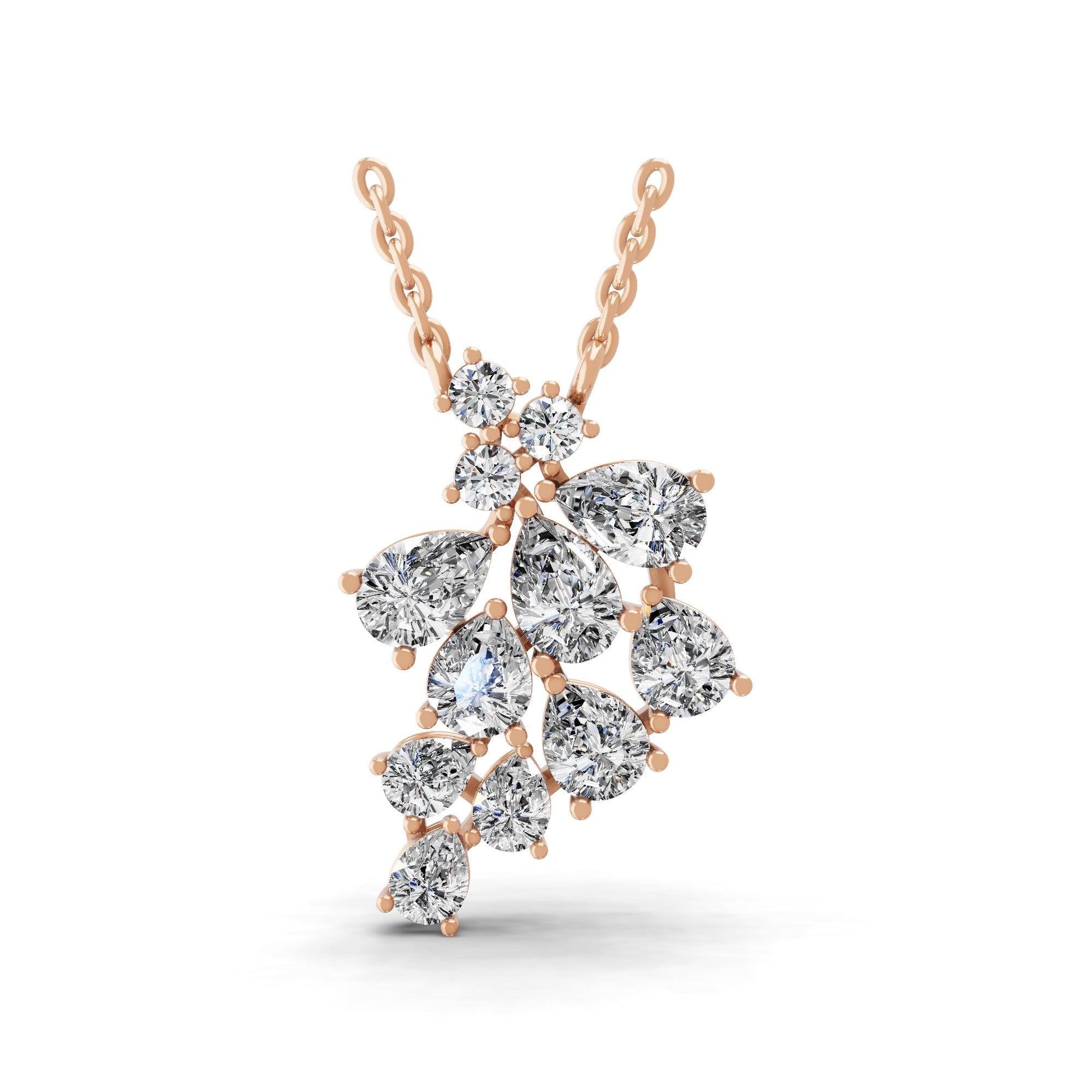 3.30Ct Leaf Cluster Pendant Necklace 14K Fine Gold Lab Grown Diamond