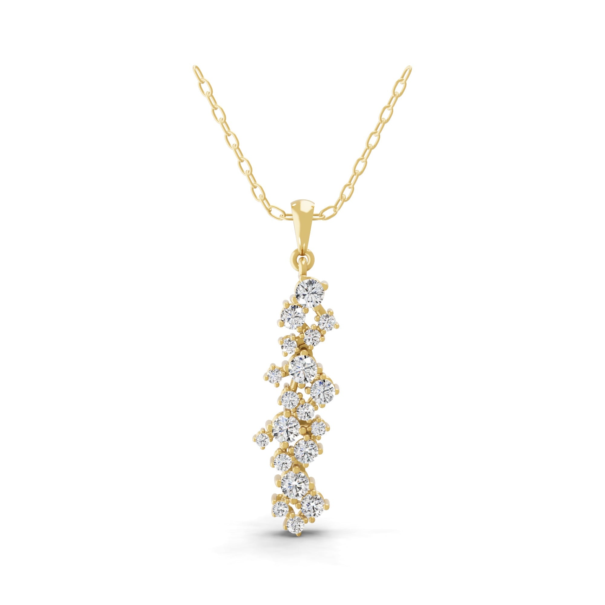 Cluster Cascade Pendant Necklace 0.63Ct Lab Grown Diamond 14k Fine Gold