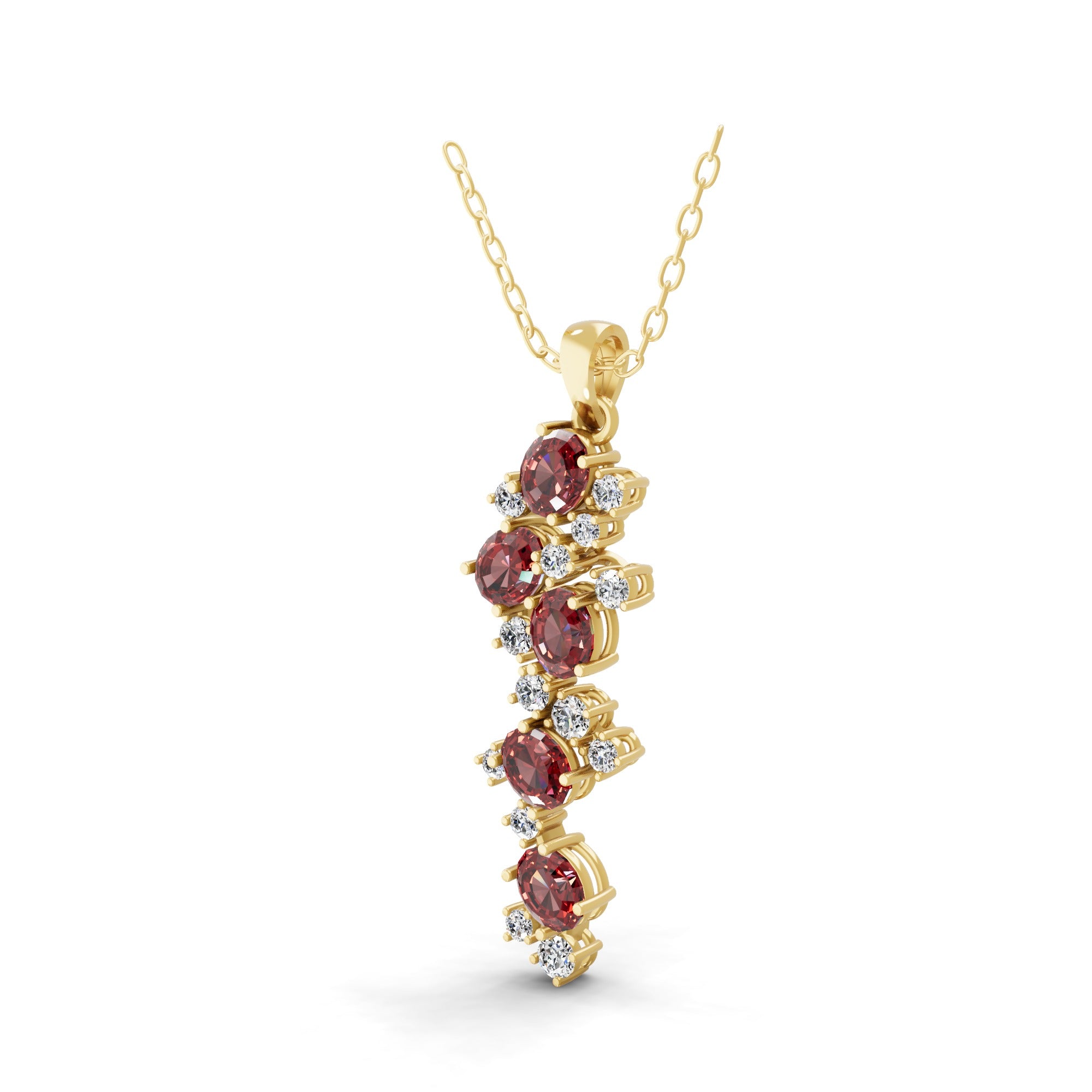 Lab Grown Diamond Oval Ruby Cluster Pendant 14K Fine Gold Necklace 0.86Tcw