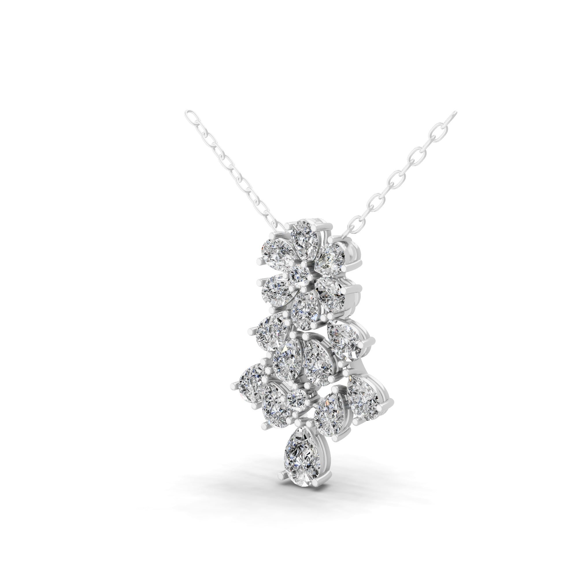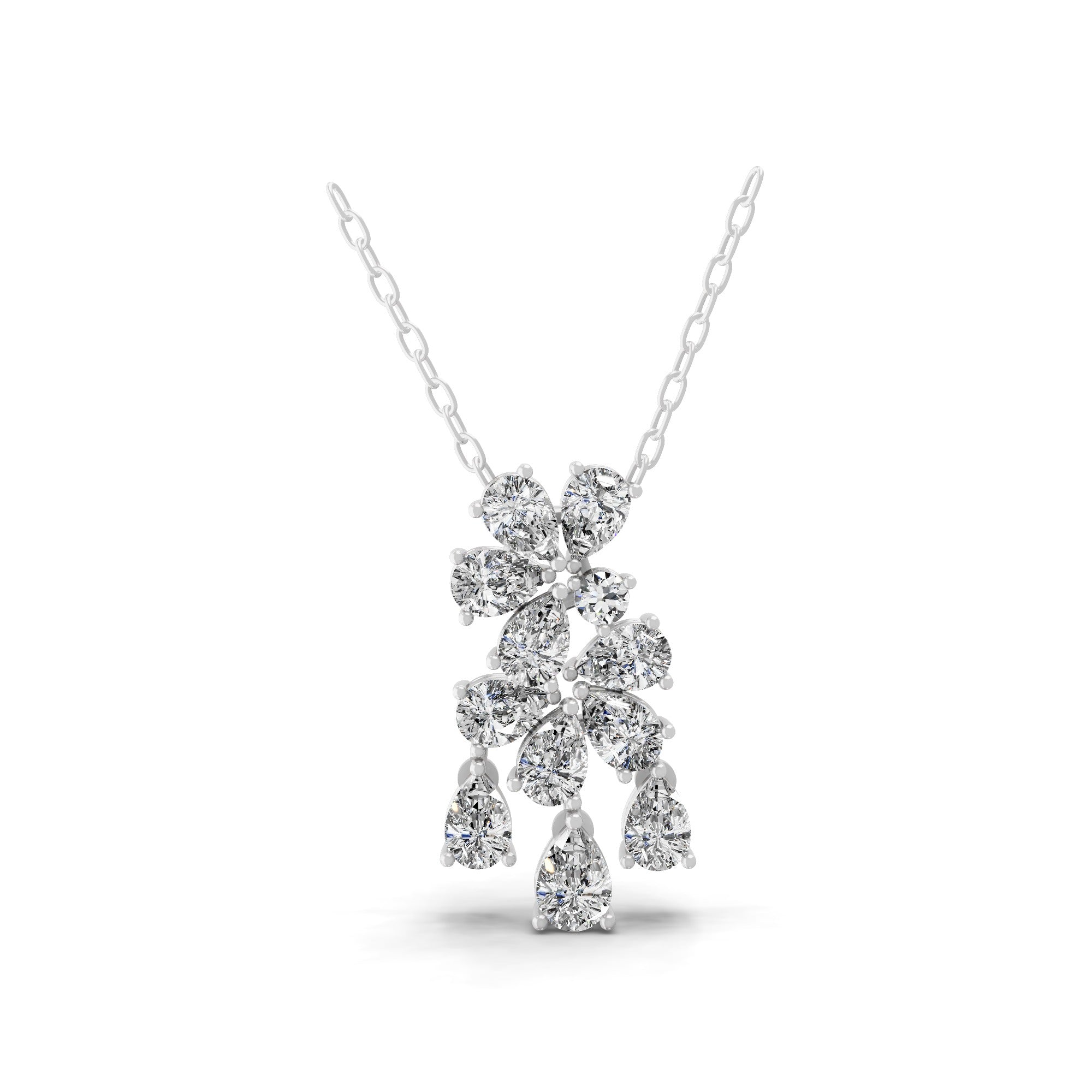 2.77Ct Lab Grown Pear Round Diamond Cluster Pendant 14K Fine Gold Necklace
