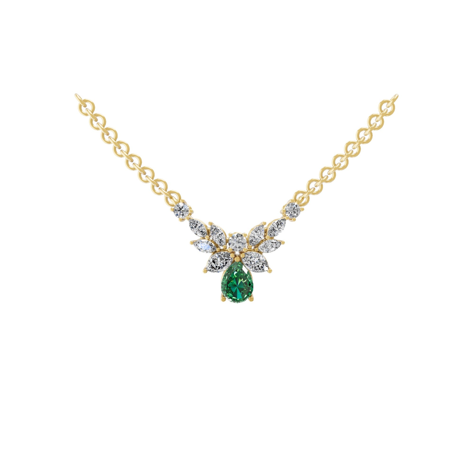 1.76Tcw Pear Shaped Emerald Drop Pendant Lab Gown Diamond 14K Gold Necklace