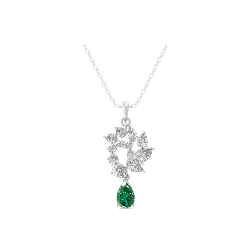 Pear Emerald Lab Grown Diamond Cluster Pendant 14K Fine Gold Necklace 3.92Tcw