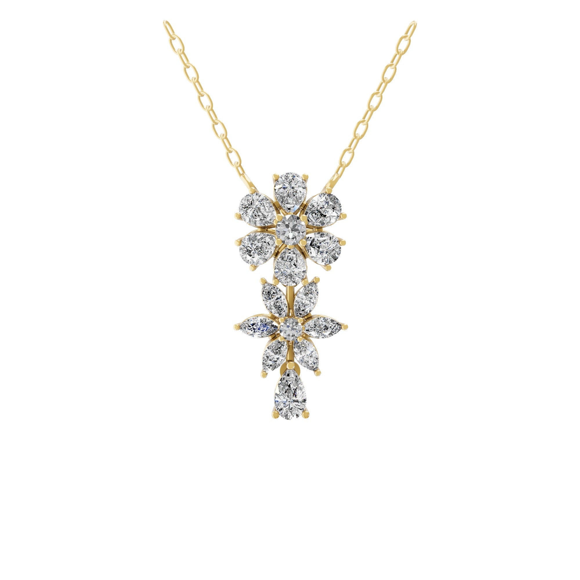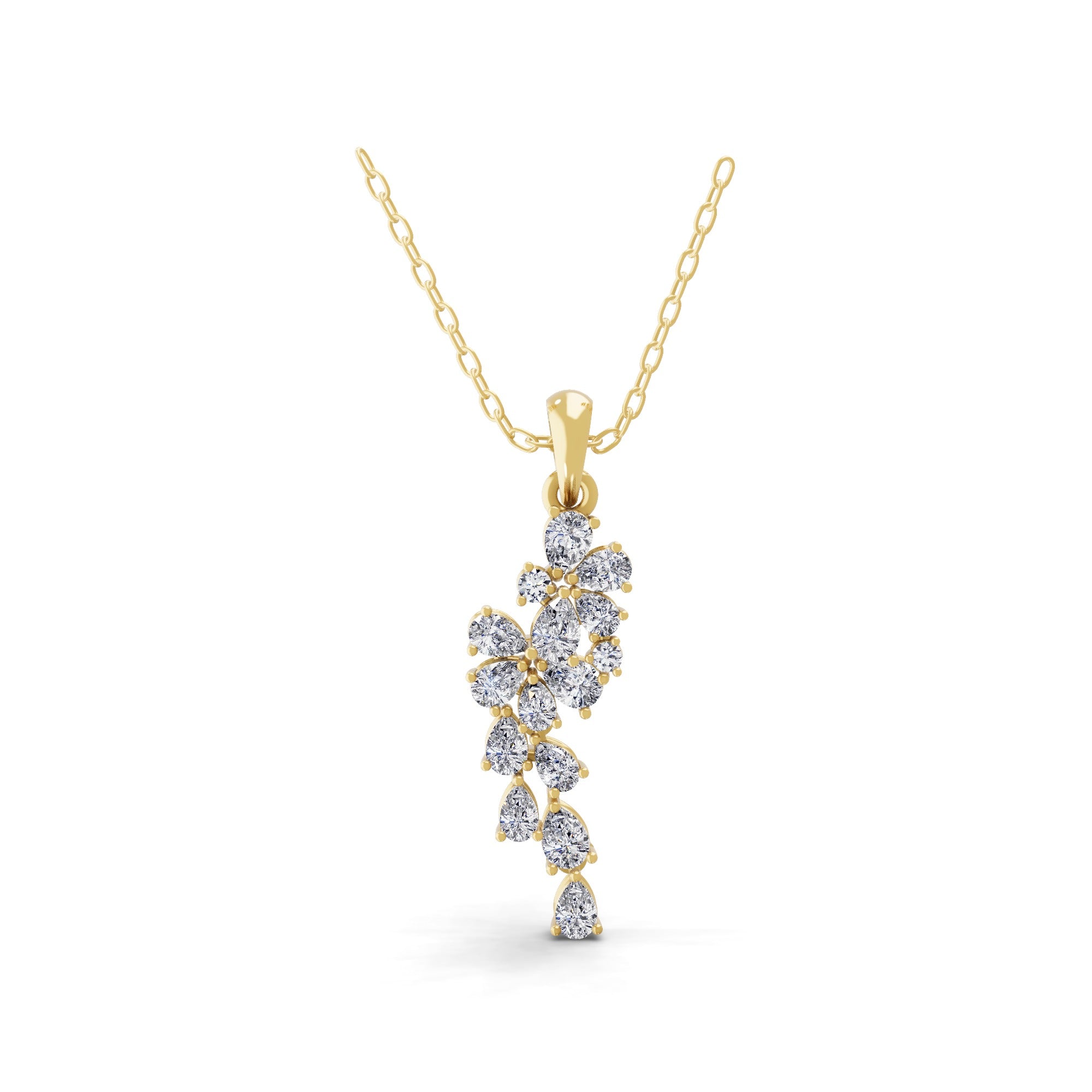 Floral Pendant Cascading Cluster 14K Fine Gold Necklace 1.79Ct Lab Grown Diamond
