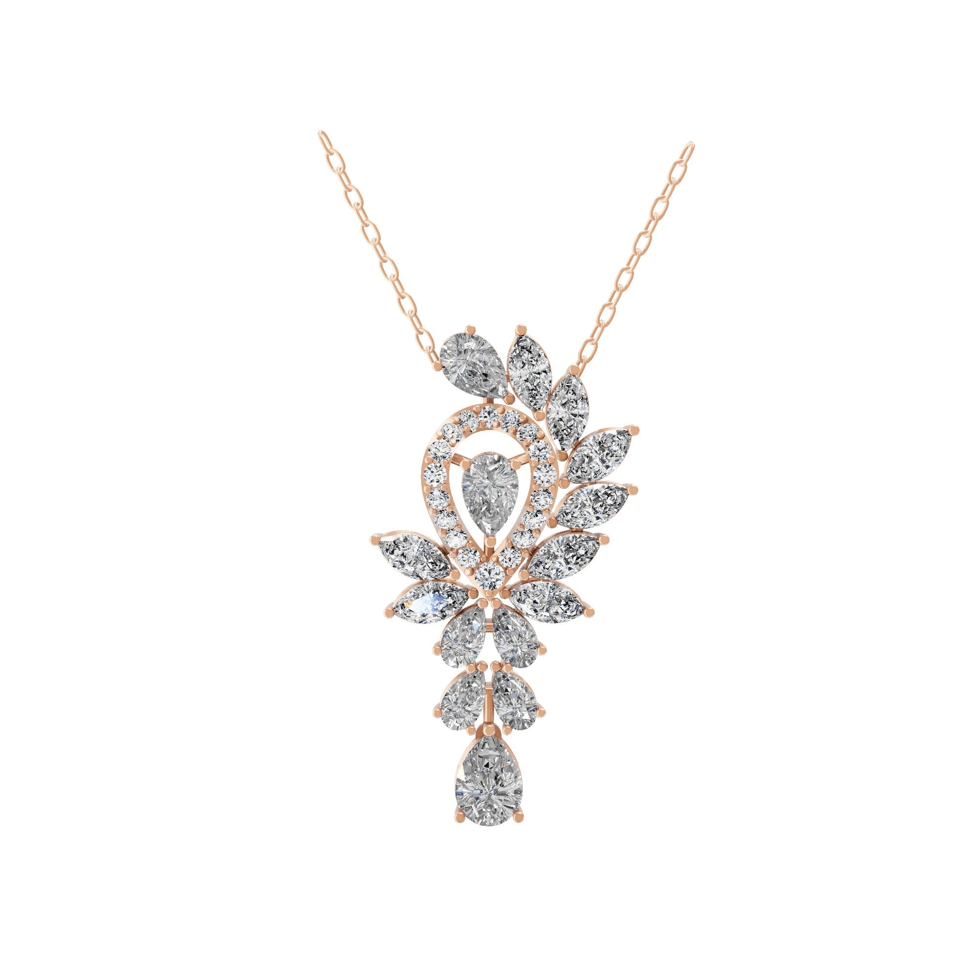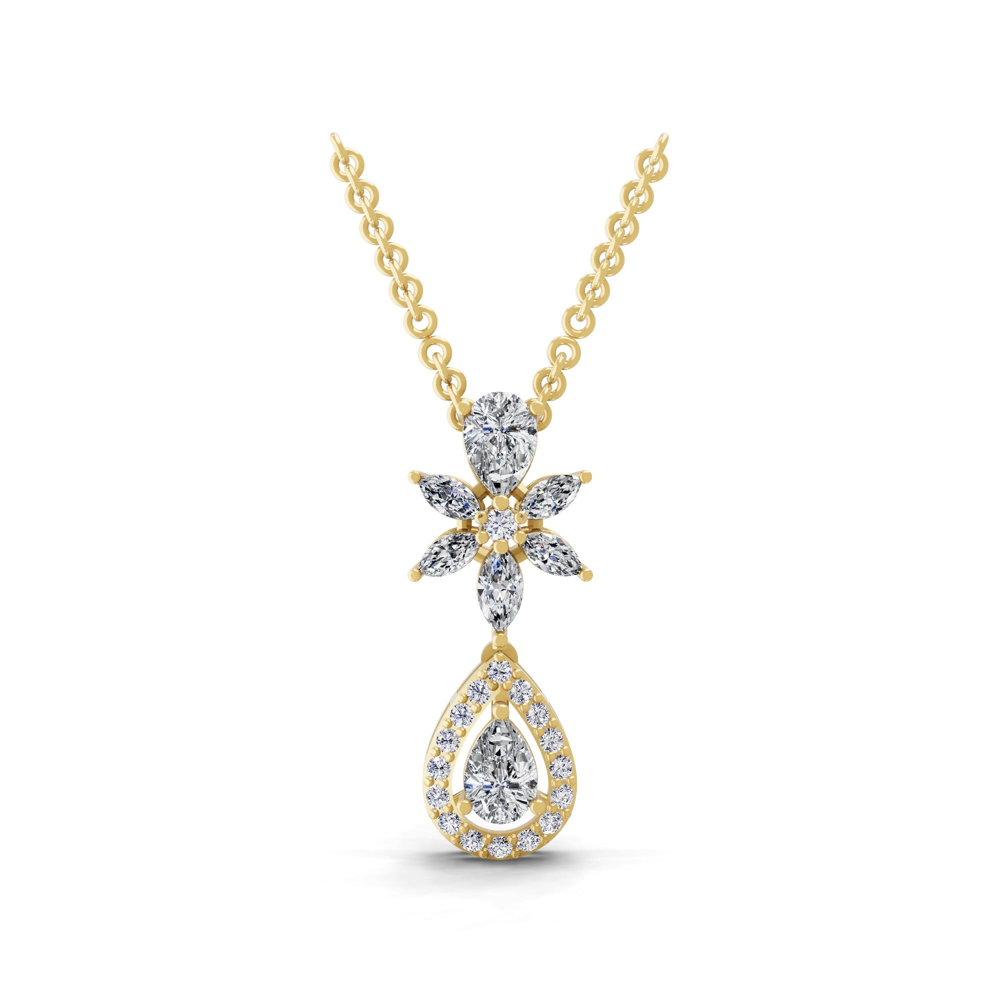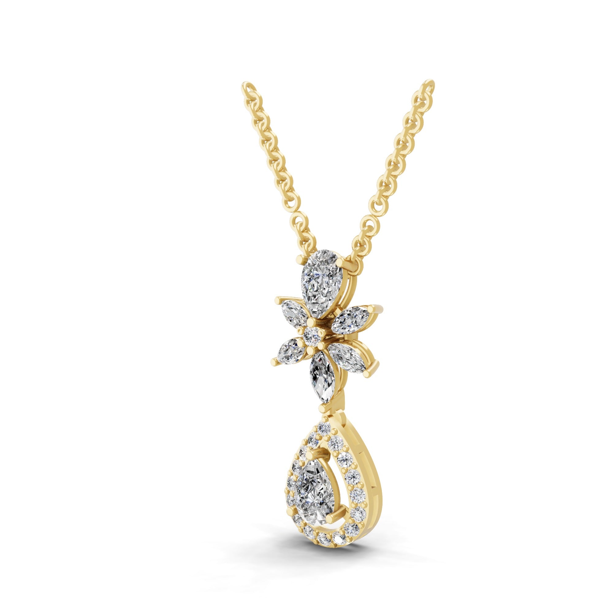 14K Fine Gold 1.54Ct Lab Grown Pear Round Diamond Floral Cluster Pendant Necklace