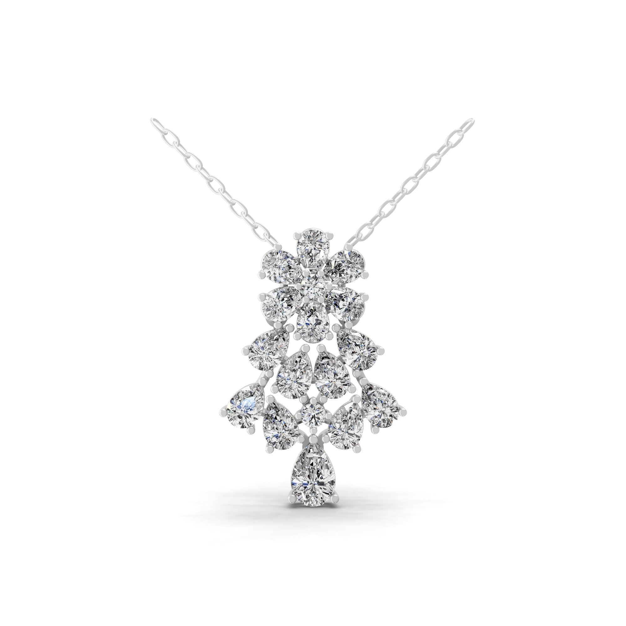 Floral Cluster Pendant 2.74Ct Lab Grown Pear Round Diamond 14K Fine Gold Necklace