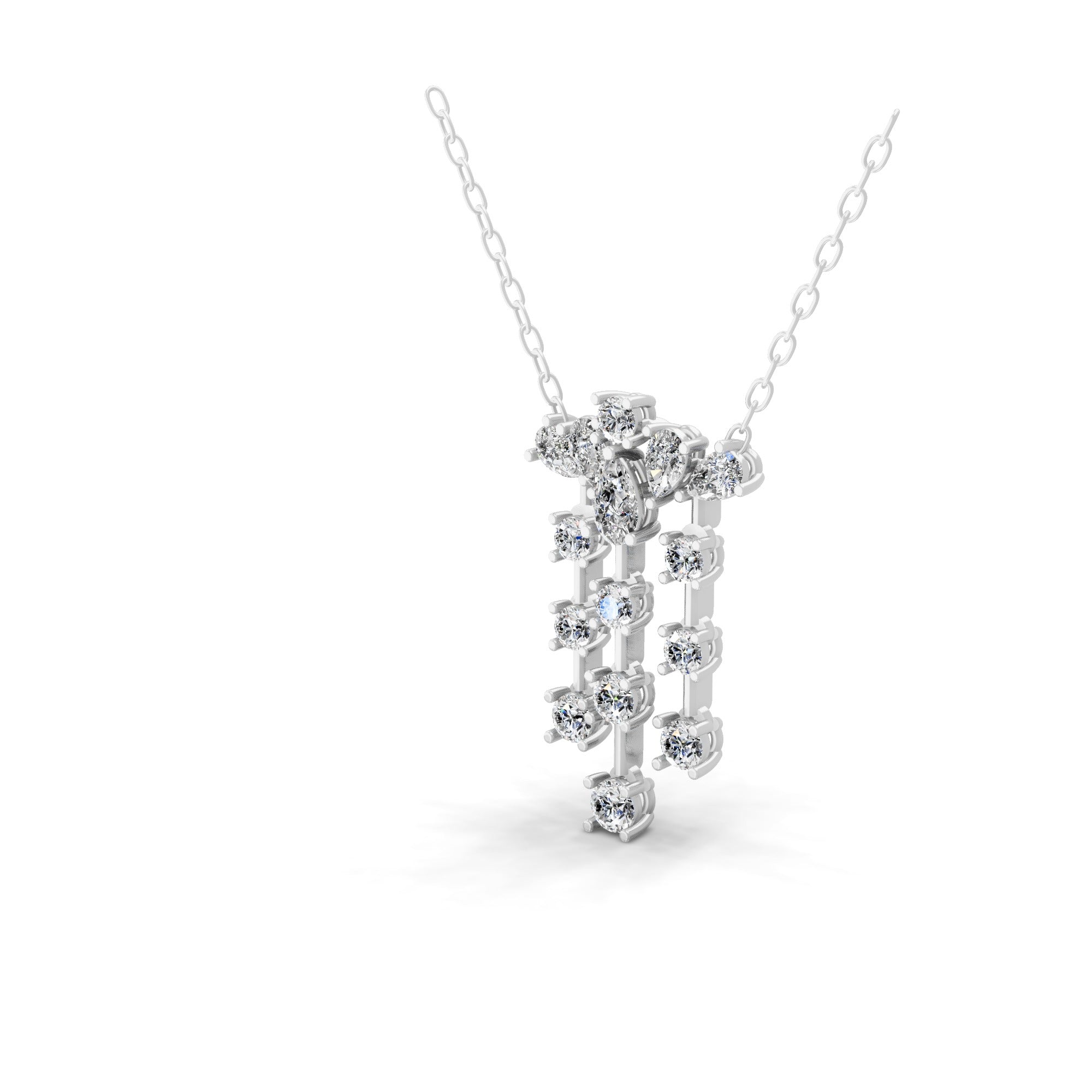 Lab Grown Multi Shape Diamond 1.02Ct Cluster Pendant 14K Fine Gold Necklace