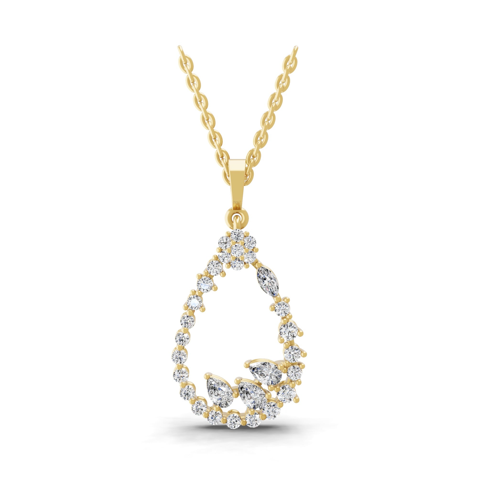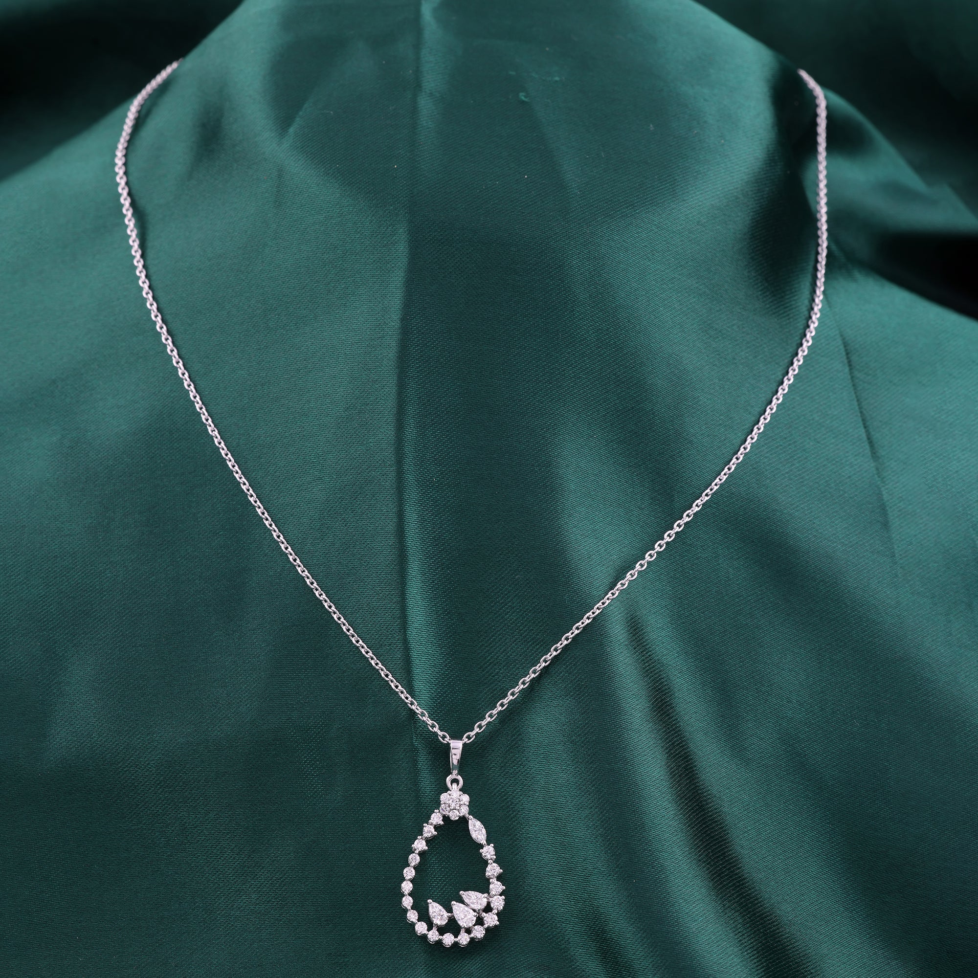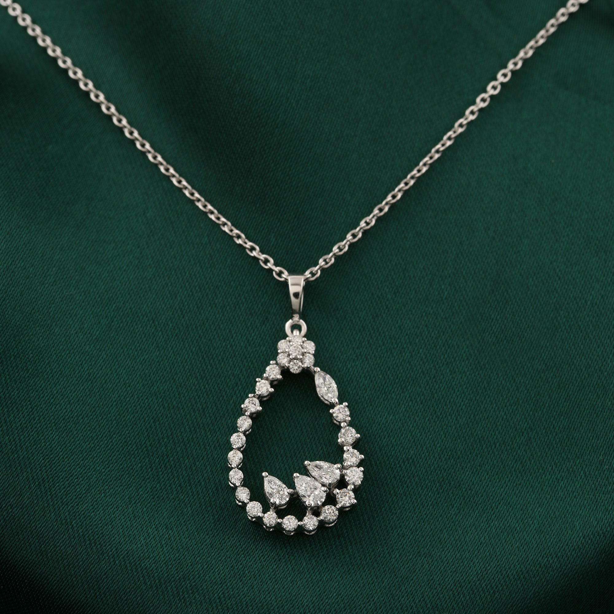 Multi Stone Lab Grown Diamond 1.05Ct Teardrop Charm Pendant Necklace 14K Gold
