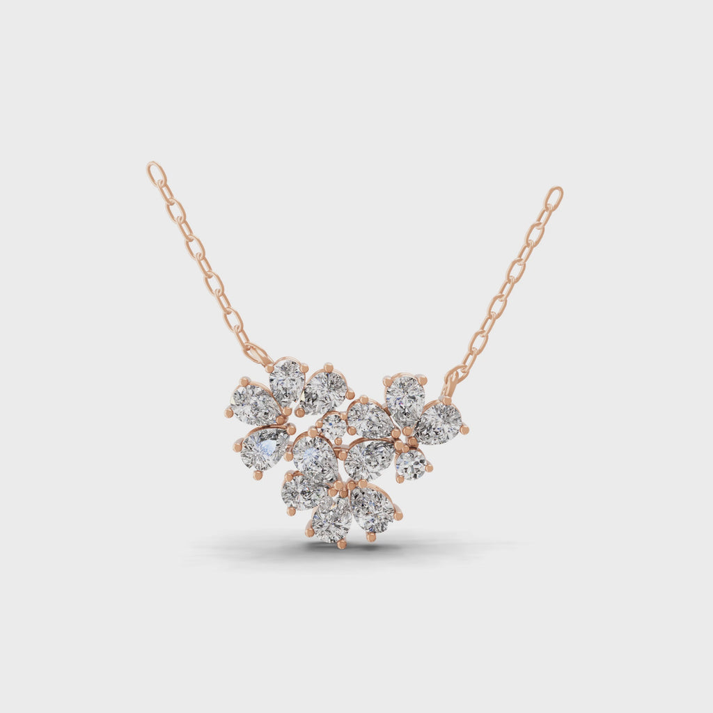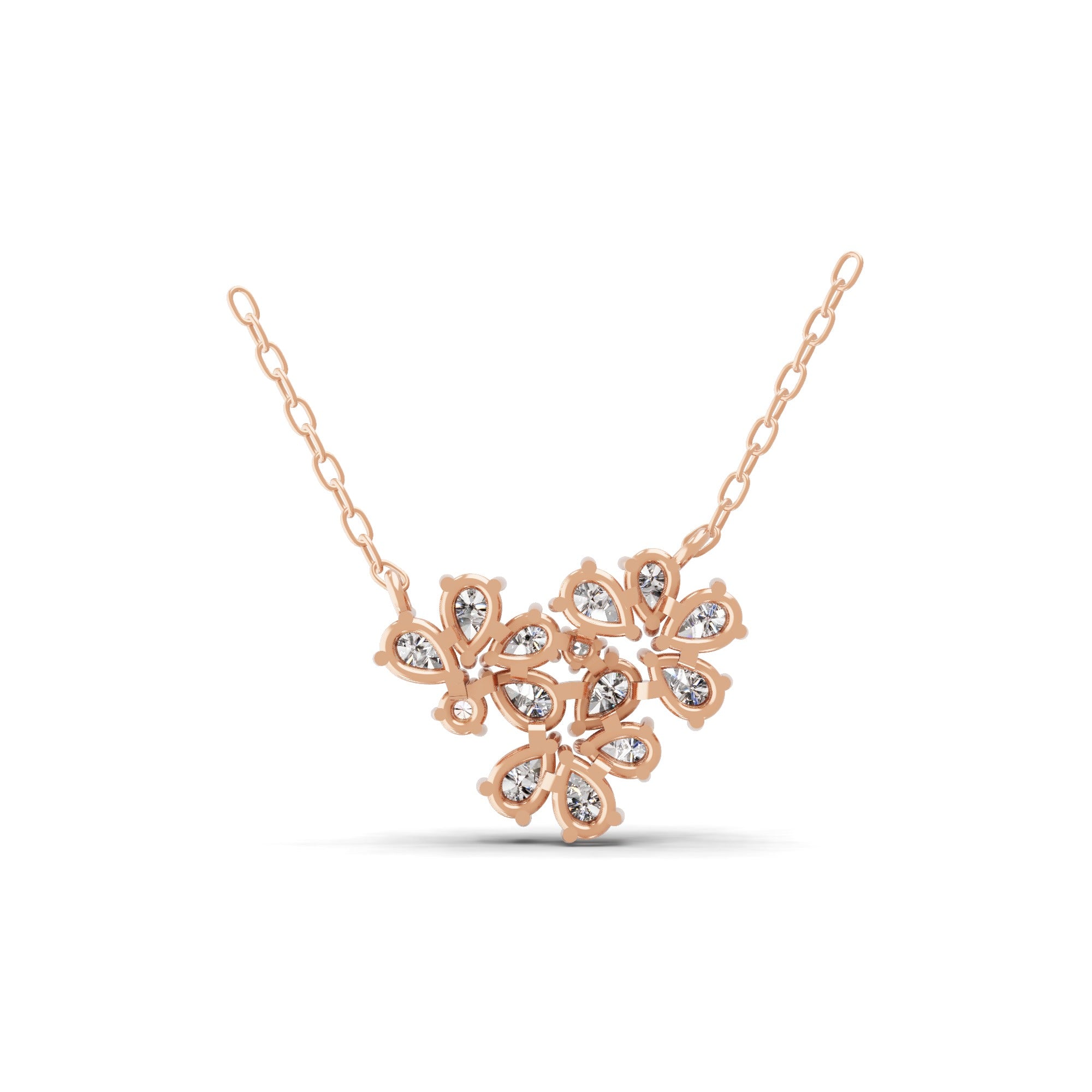 14K Fine Gold 1.54Ct Lab Grown Pear Round Diamond Floral Cluster Pendant Necklace