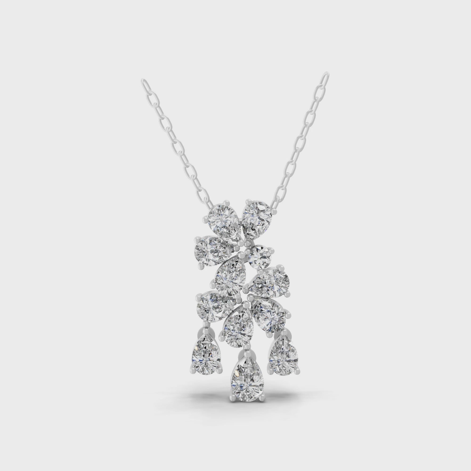 14K Fine Gold 1.91Ct Lab Grown Round Pear Diamond Cluster Pendant Necklace