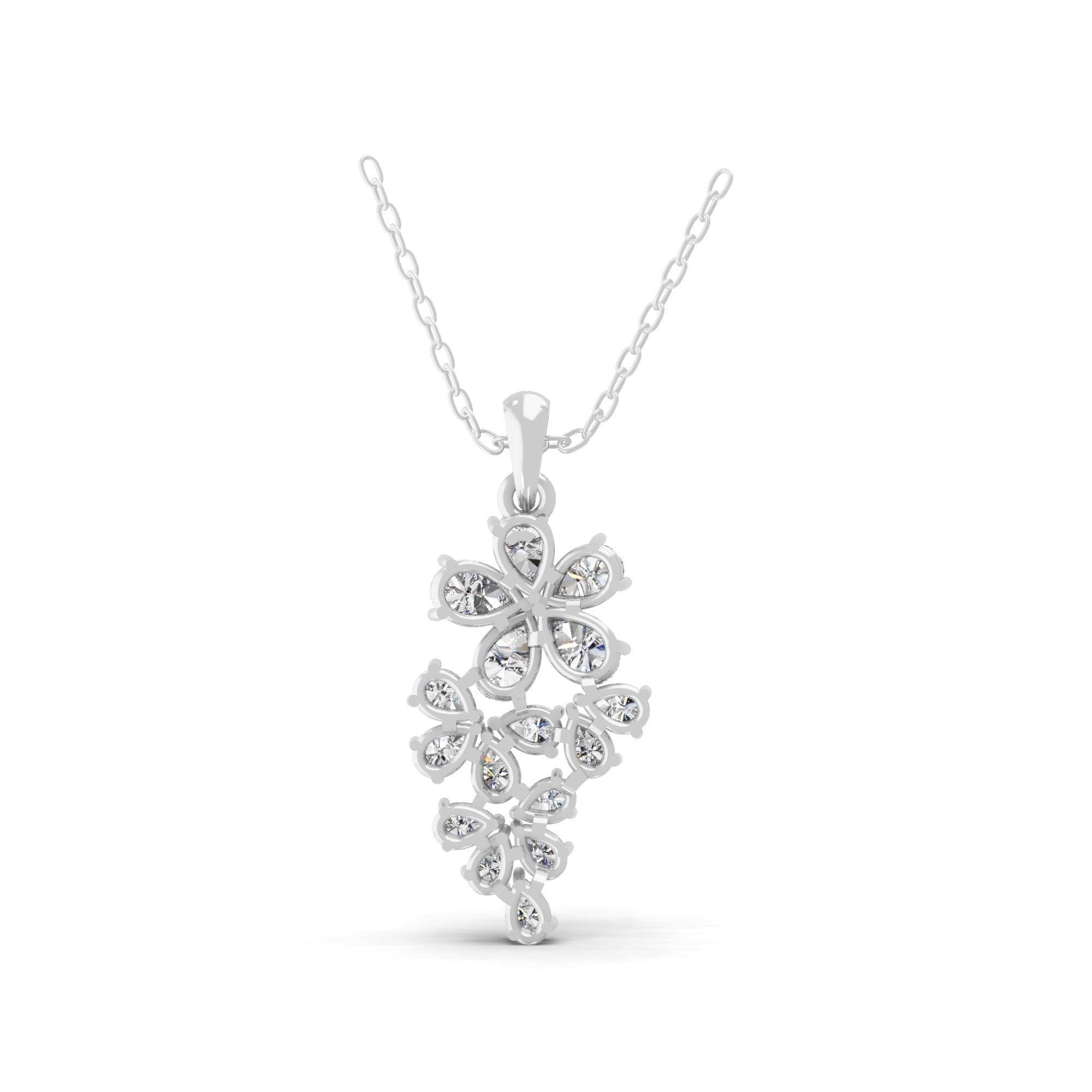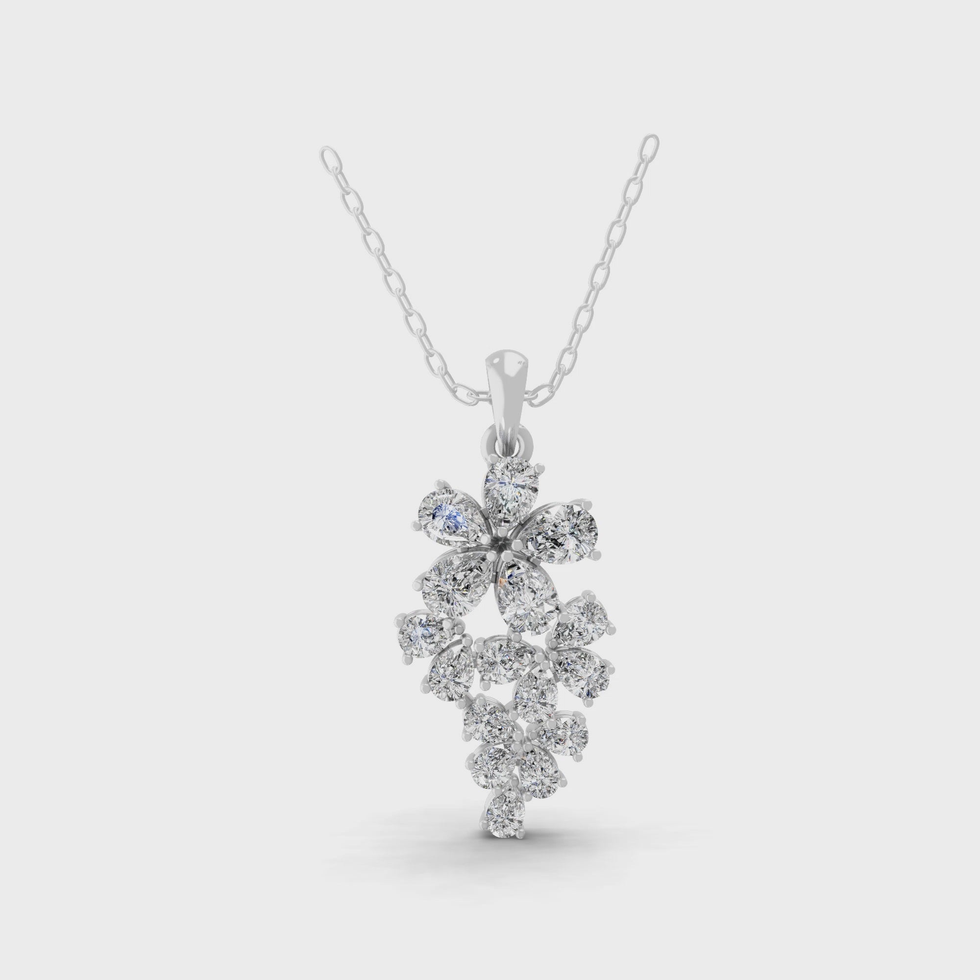 3.15Ct Floral Design Pendant Lab Grown Pear Cut Diamond 14K Fine Gold Necklace