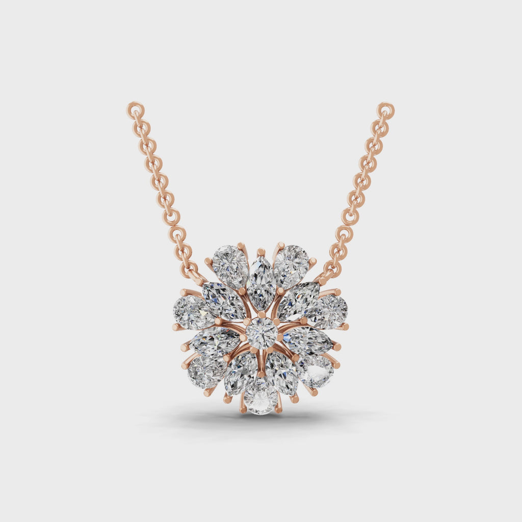 4.67Ct Multi Shape Lab Grown Diamond Pendant Floral Cluster Necklace 14K Fine Gold