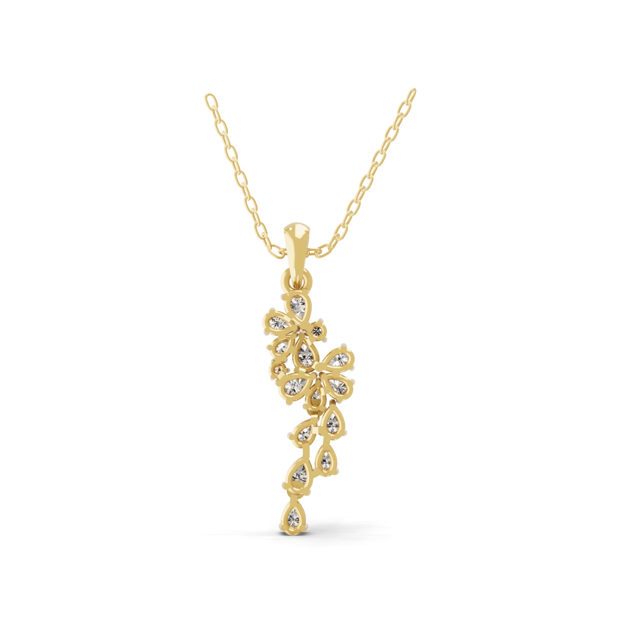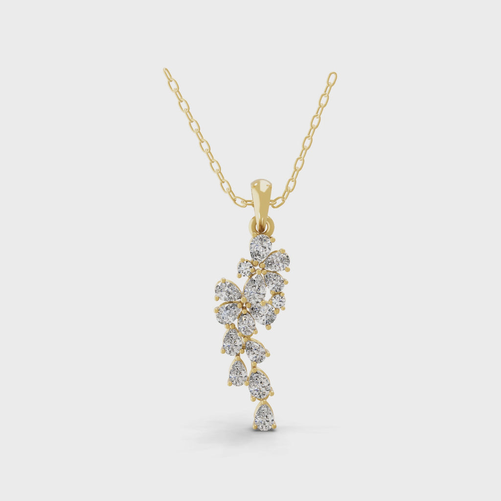 Floral Cluster Lab Grown Diamond Round Pear Pendant 14K Gold Necklace 1.40Ct