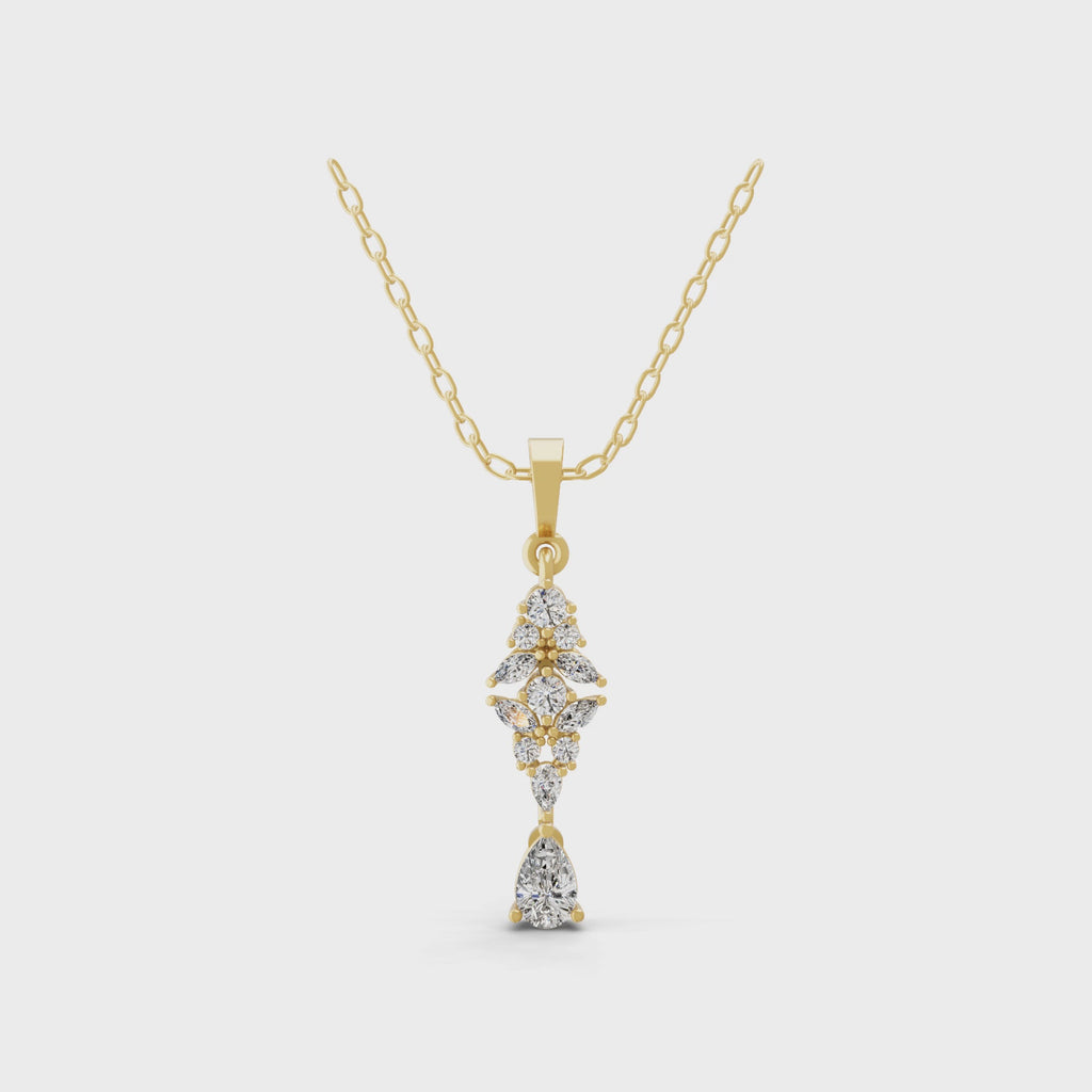 Graduated Style Pendant Necklace Lab Grown Diamond 0.84Ct 14K Fine Gold