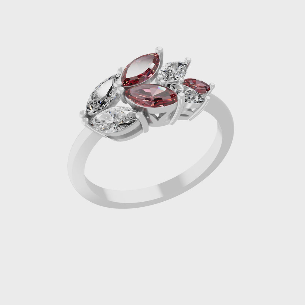 1.24Tcw Marquise Cut Lab Grown Diamond Ruby Leaf Ring 14K Fine Gold
