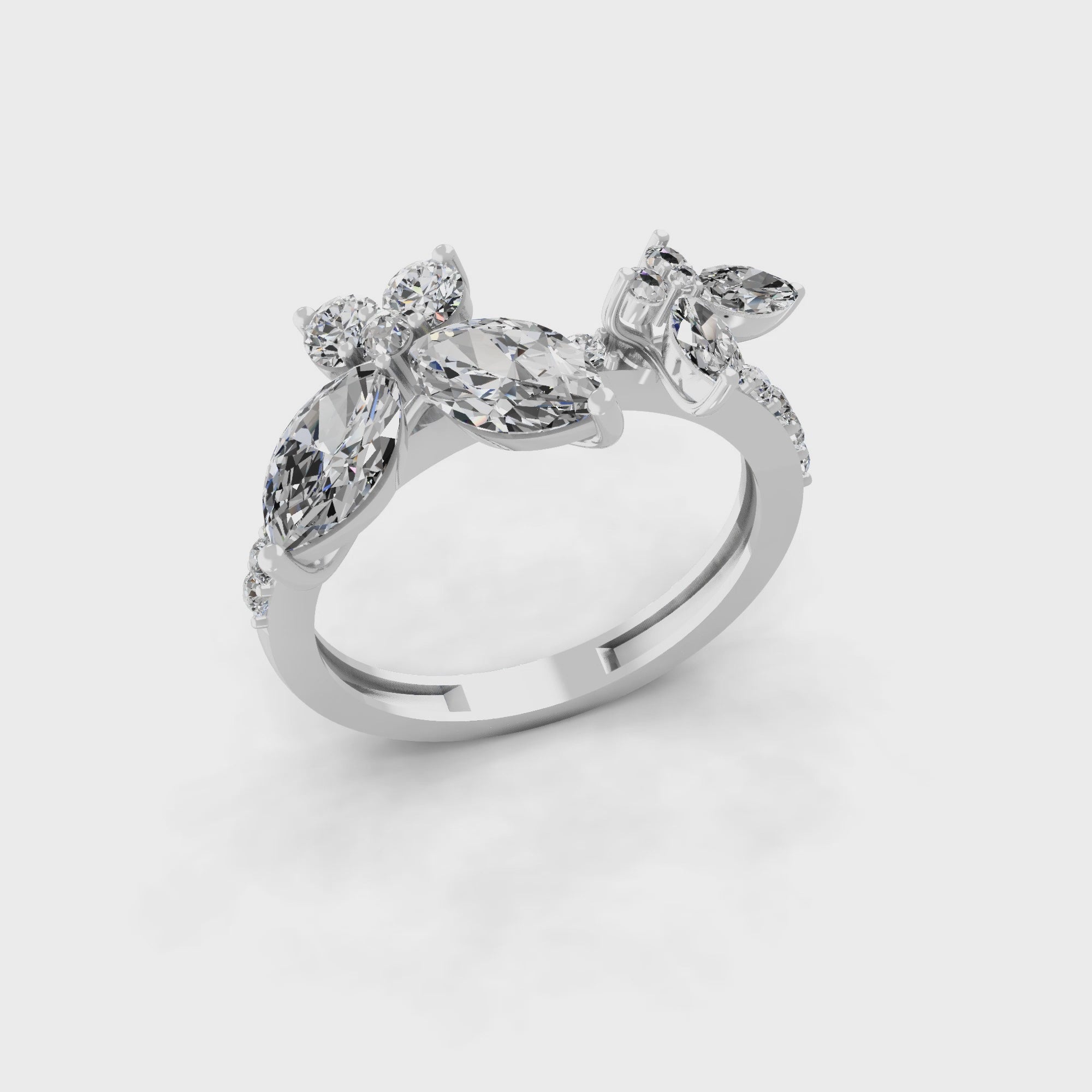 1.72Ct Lab Grown Round Marquise Diamond Butterfly Ring 14K Fine Gold