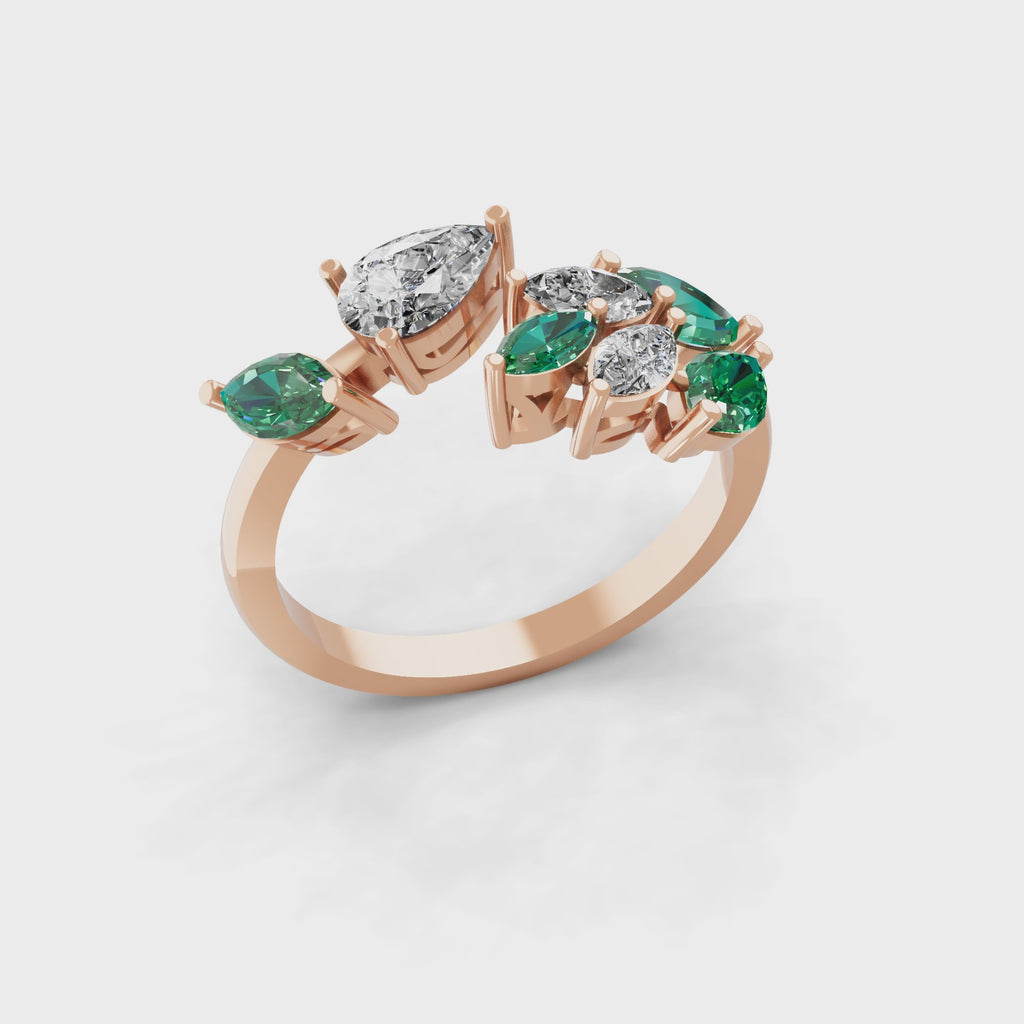 14K Gold Emerald Lab Grown Marquise Diamond Leaf Design Ring 1.13Tcw
