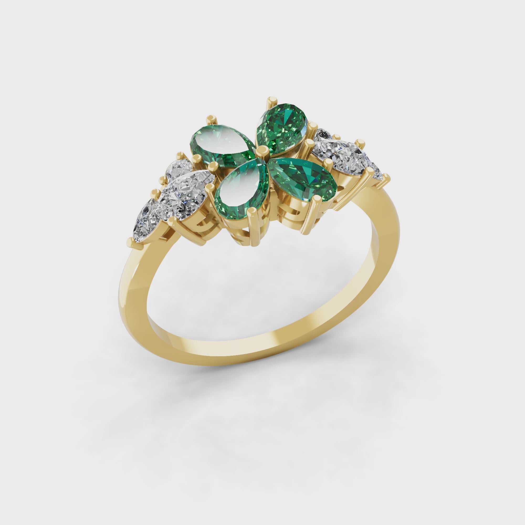 Pear Emerald Lab Grown Diamond Floral Ring 14K Fine Gold 0.77Tcw
