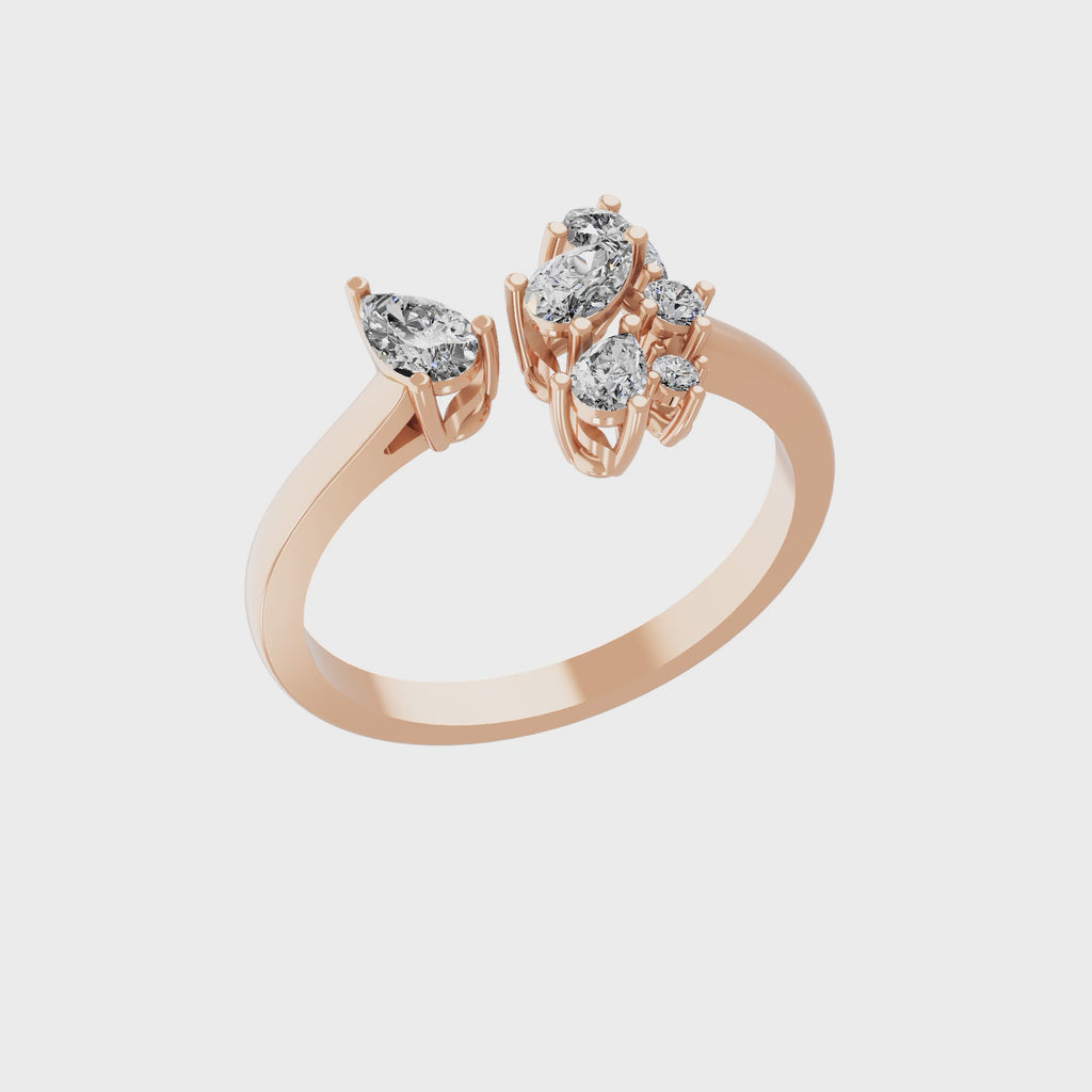 Pear Round Lab Grown Diamond 14K Fine Gold Cuff Promise Ring 0.57Ct