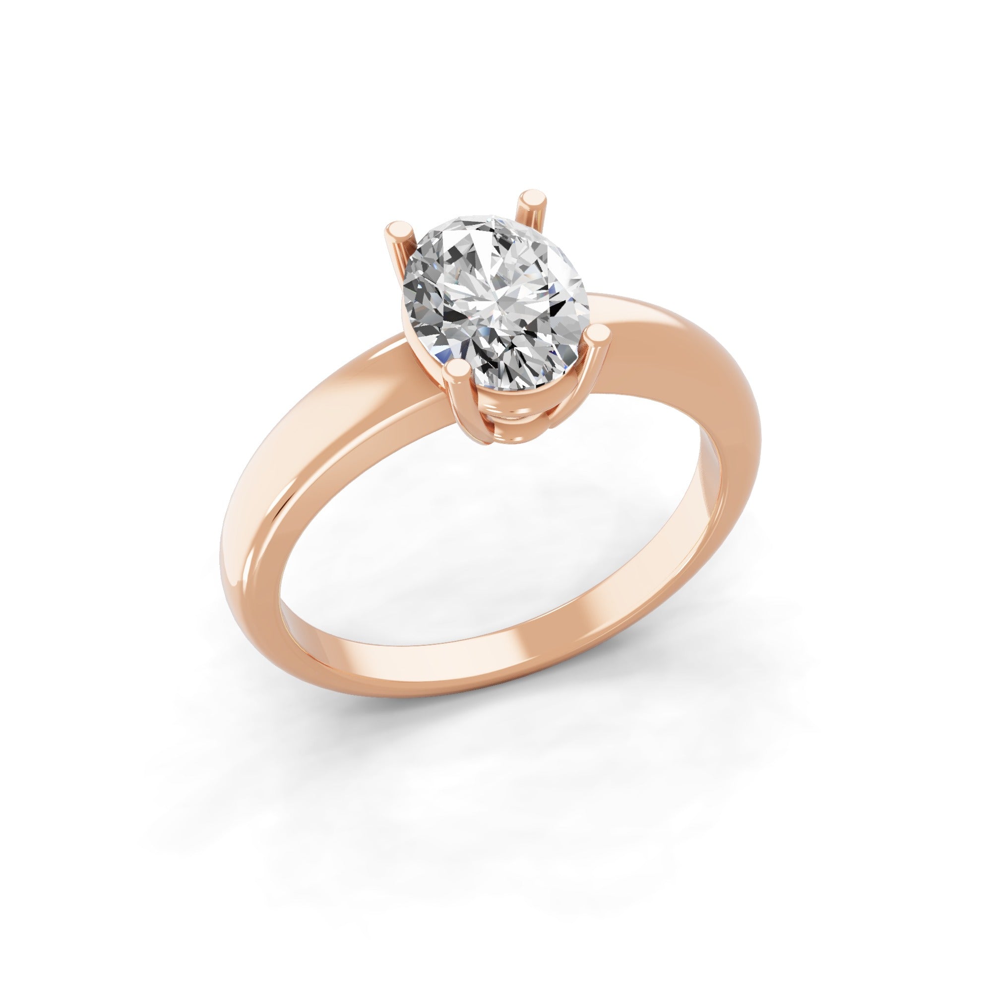 14K Fine Gold Oval Solitaire Ring Lab Grown Diamond 0.50Ct