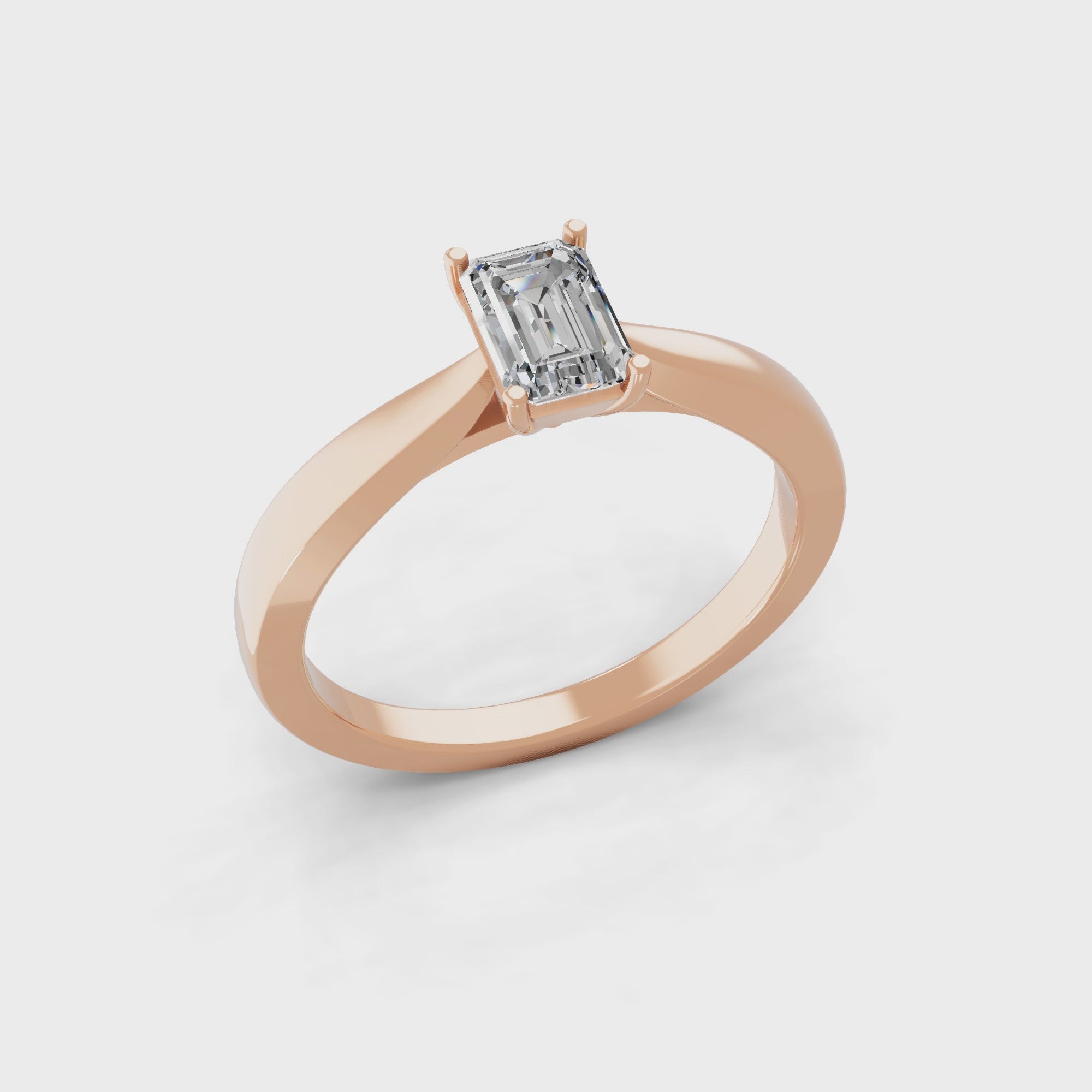 Solitaire Lab Grown Emerald Cut Diamond Ring 0.50Ct 14K Fine Gold
