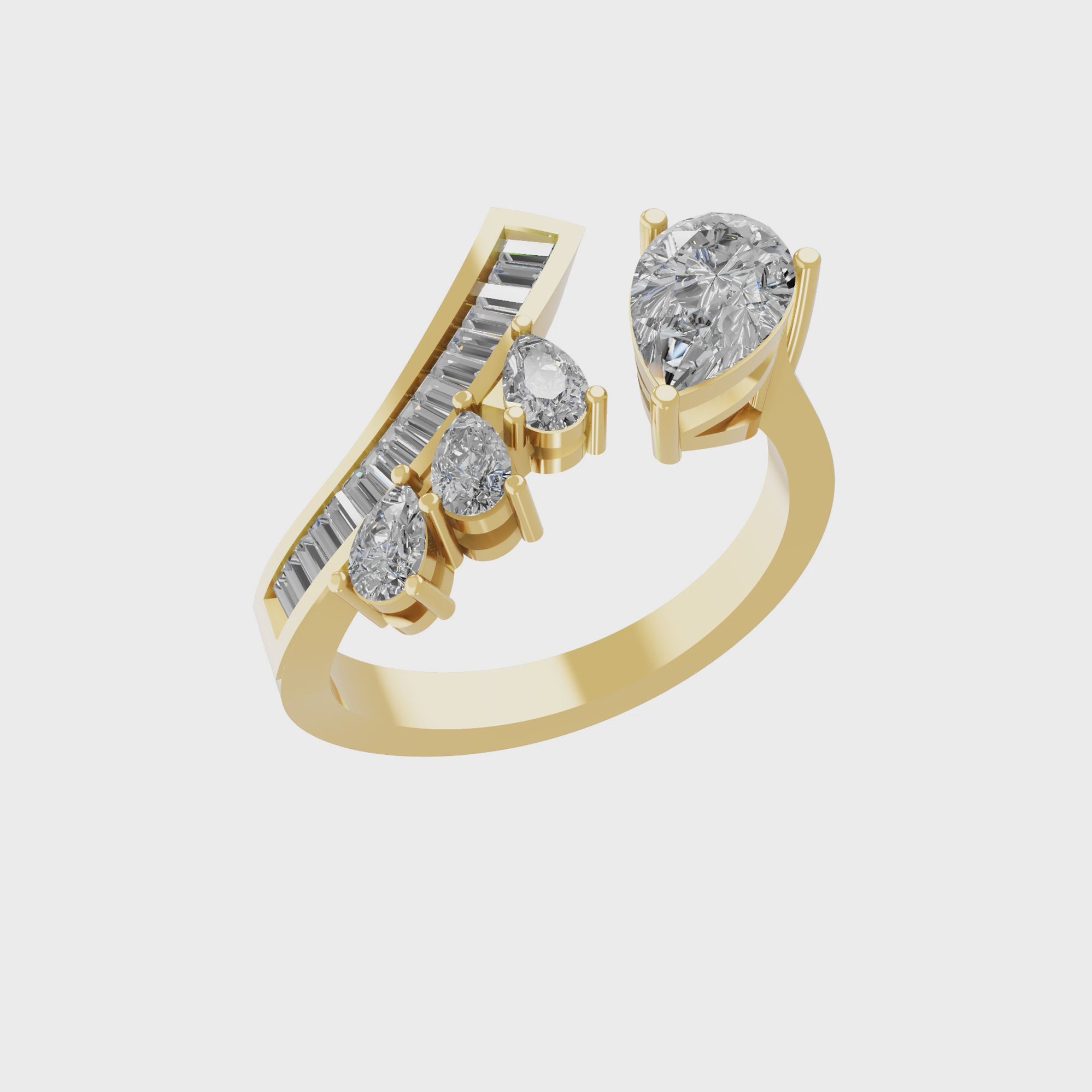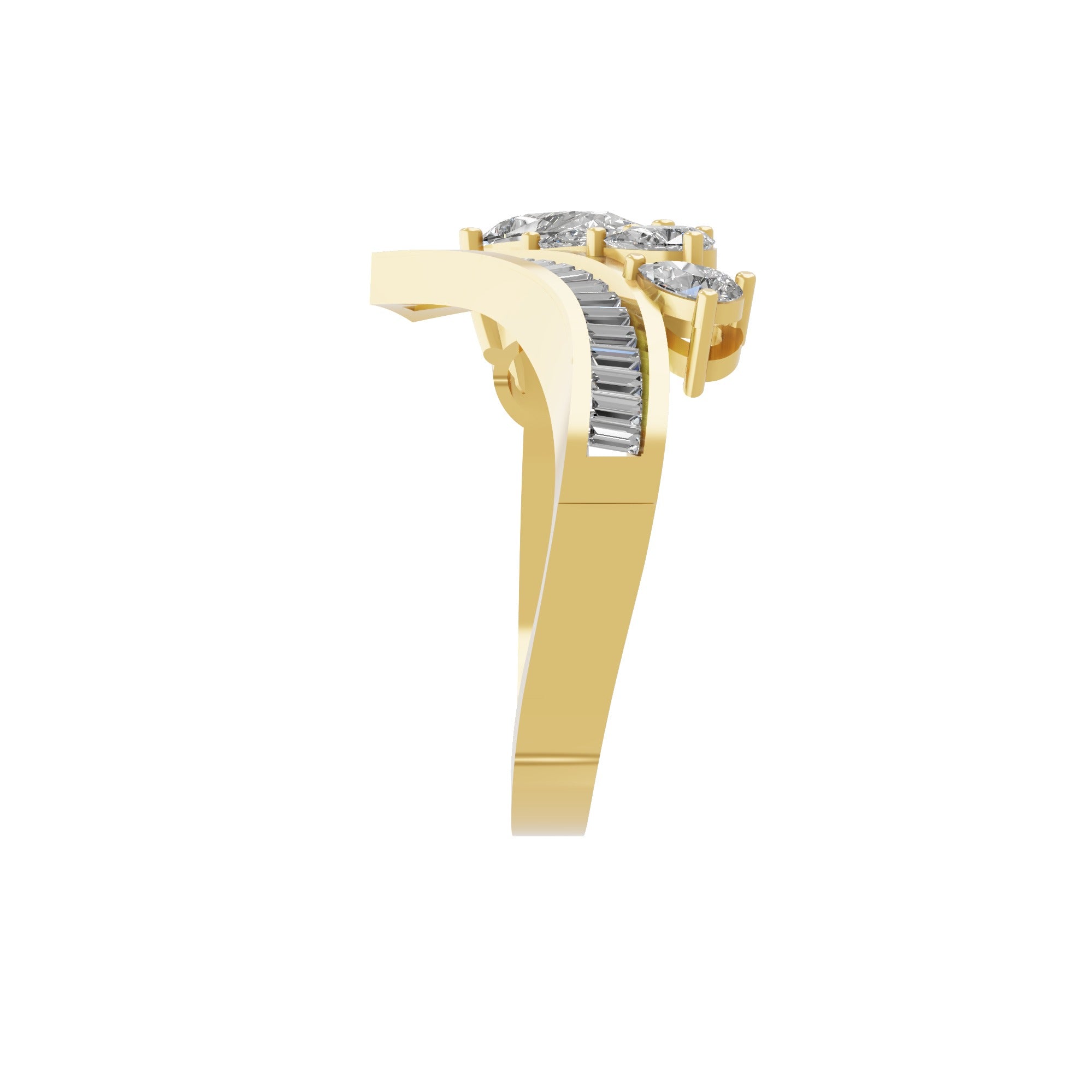 Baguette Pear Cut Lab Grown Diamond 1.83Ct 14K Fine Gold Ring
