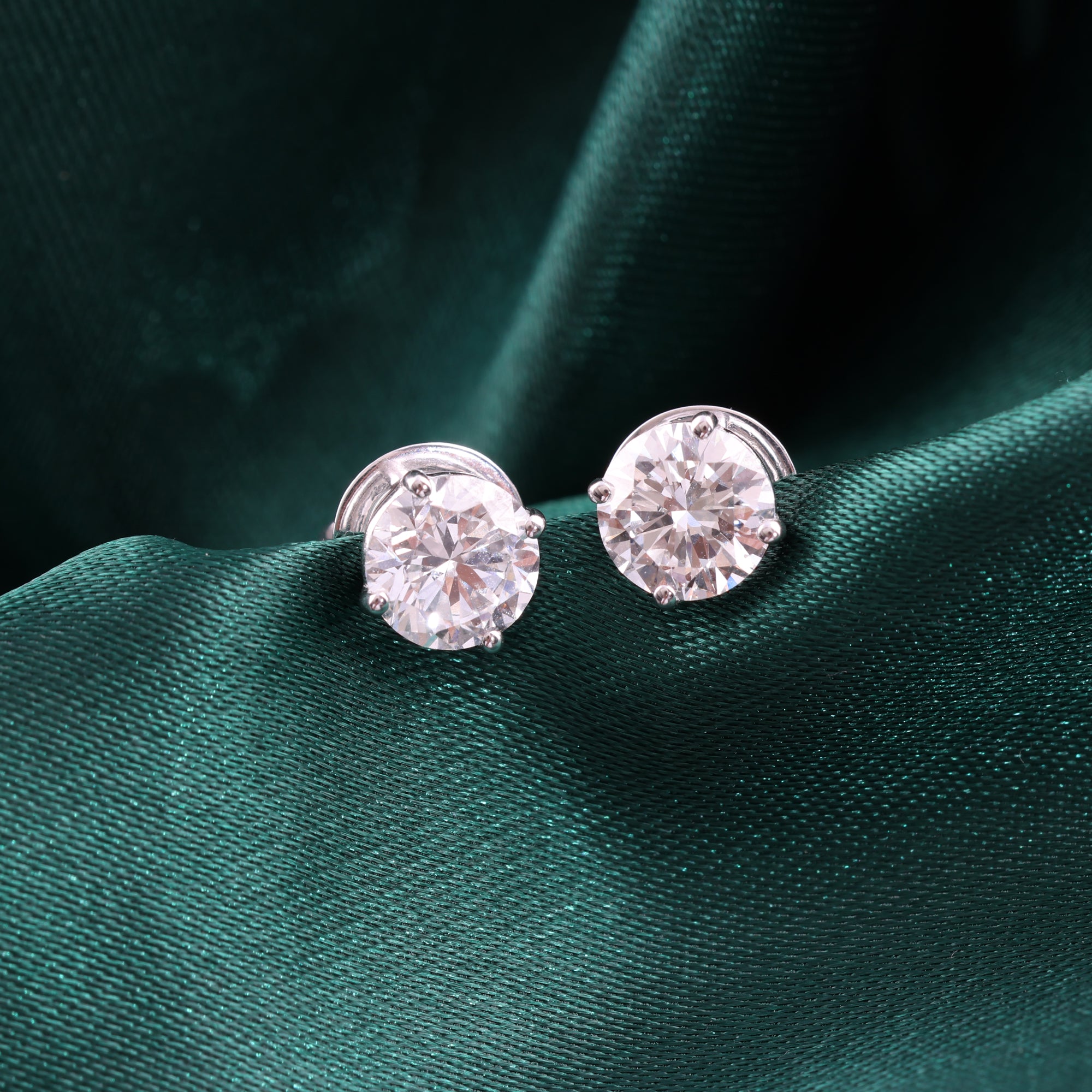 Solitaires Stud Lab Grown Diamond 1.00Ct 14K Fine Gold Earrings