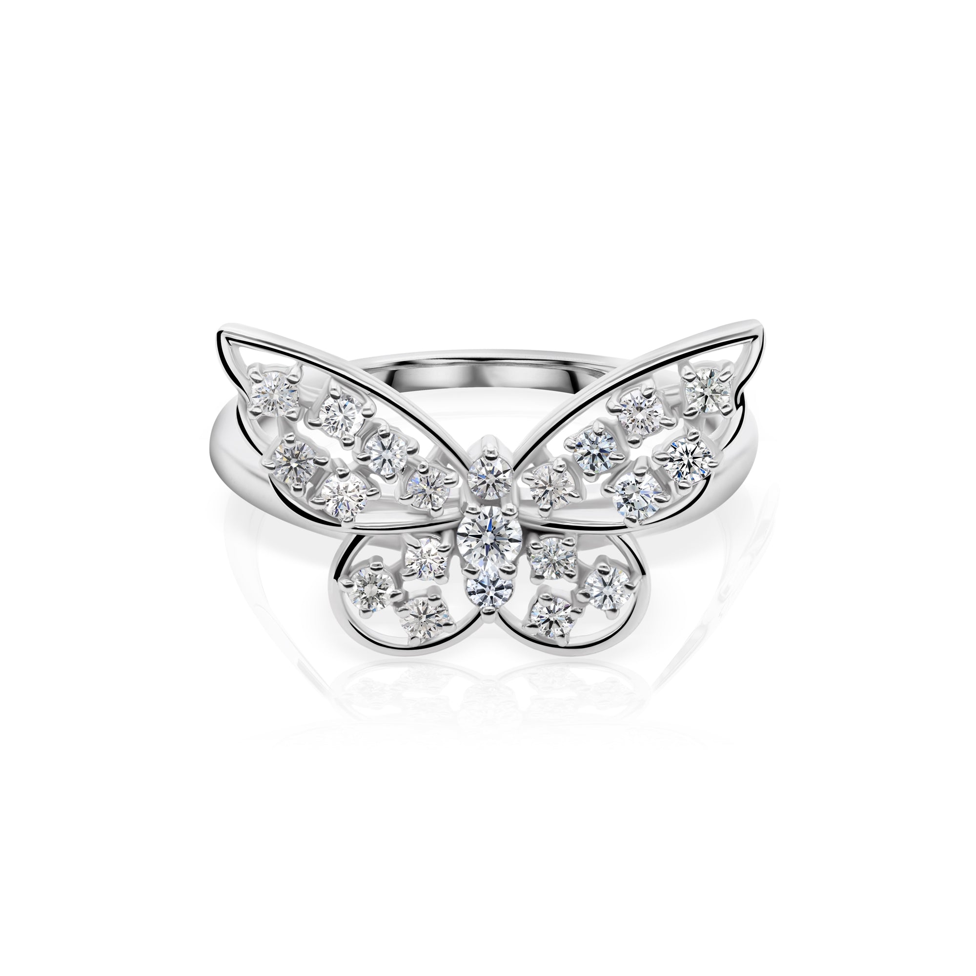 Lab Grown Round Cut Diamond Butterfly Ring 14K White Fine Gold 0.60 Ct