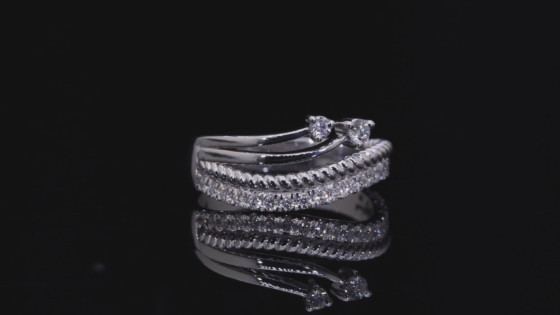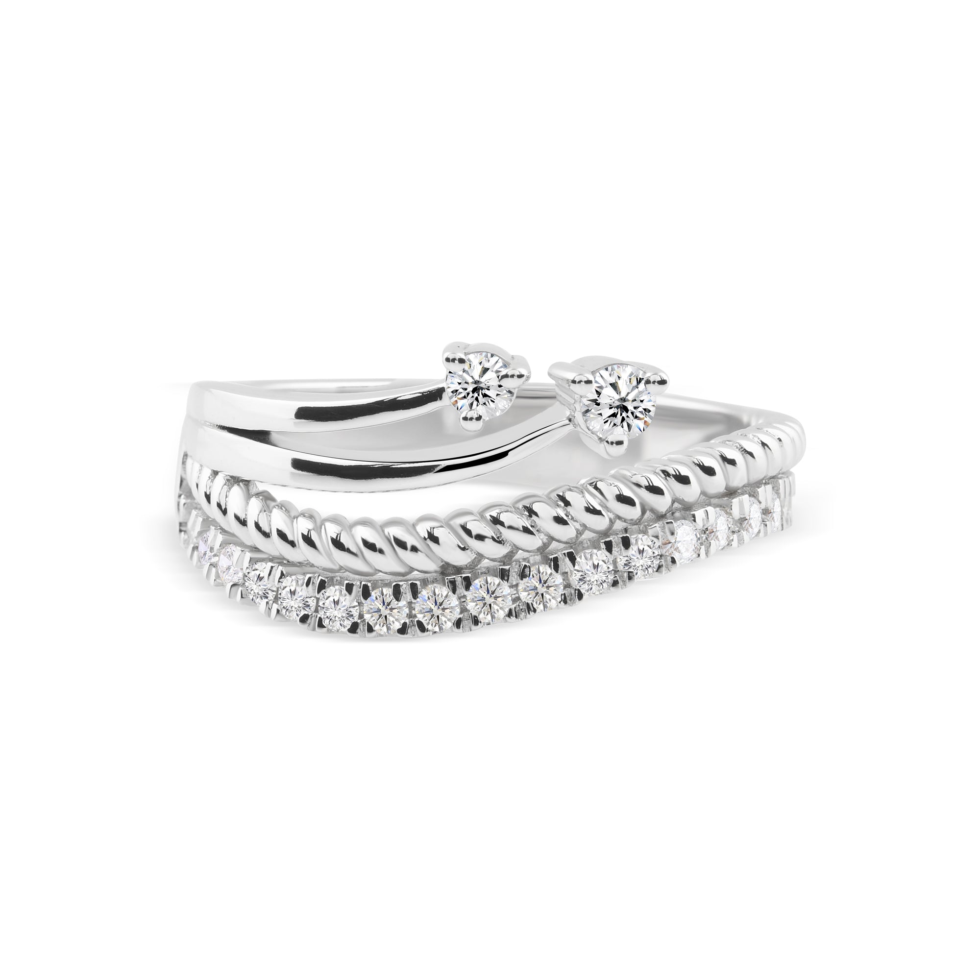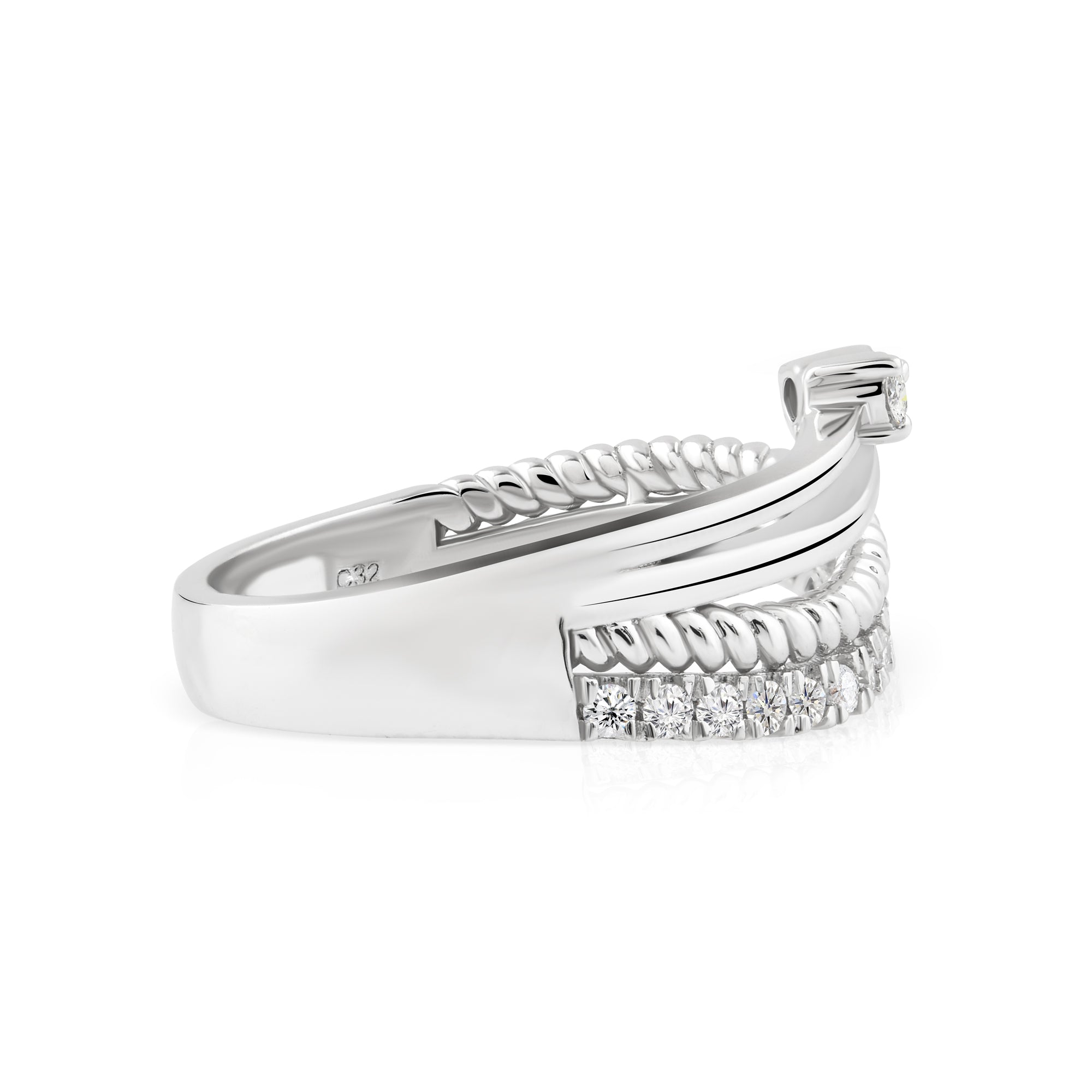 Multi Band Rope Statement Ring Round Cut 0.48Ct Lab Grown Diamond 14K Fine Gold