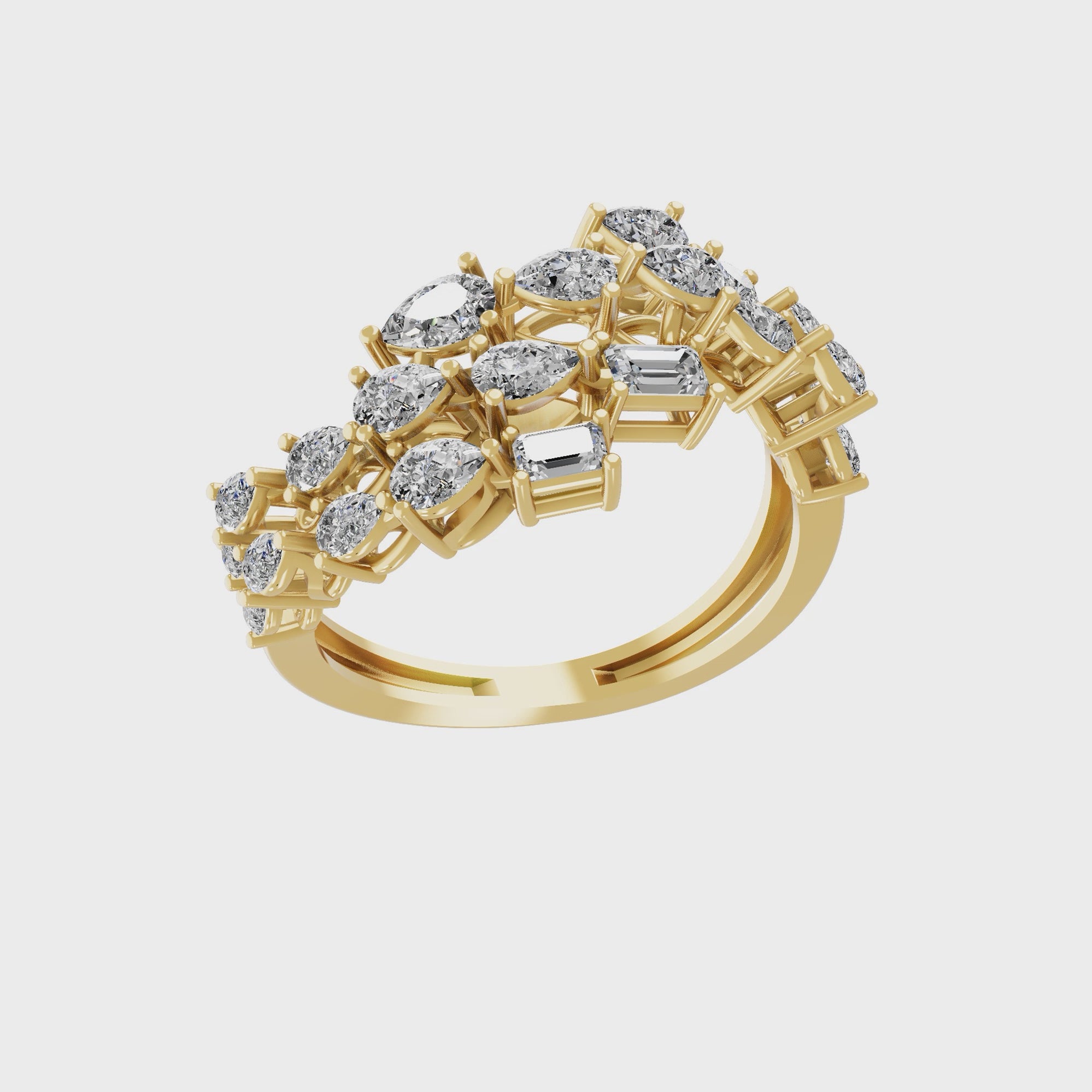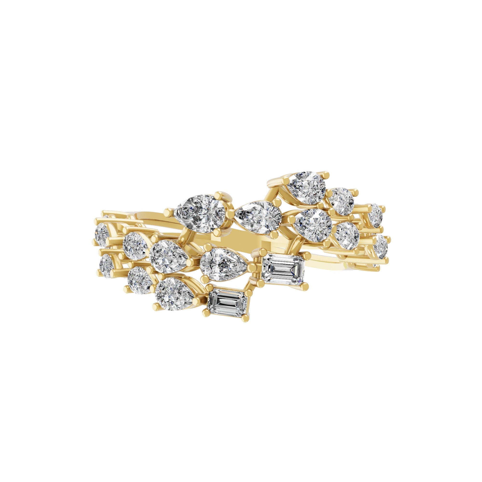 Multi Shape 1.45 Ct Lab Grown Diamond Bypass Ring 14k Fine Gold