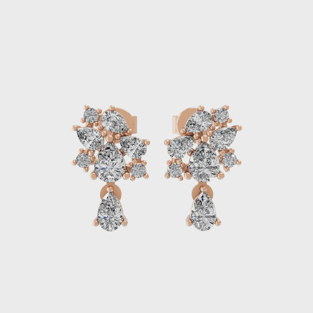 1.02Ct Lab Grown Diamond Pear Round Cluster Stud Earrings 14K Fine Gold